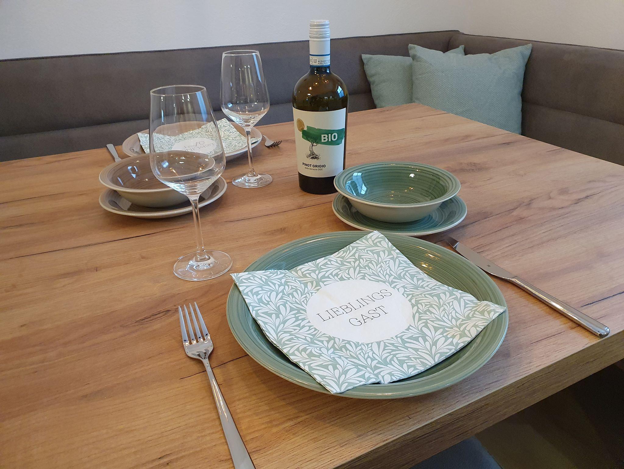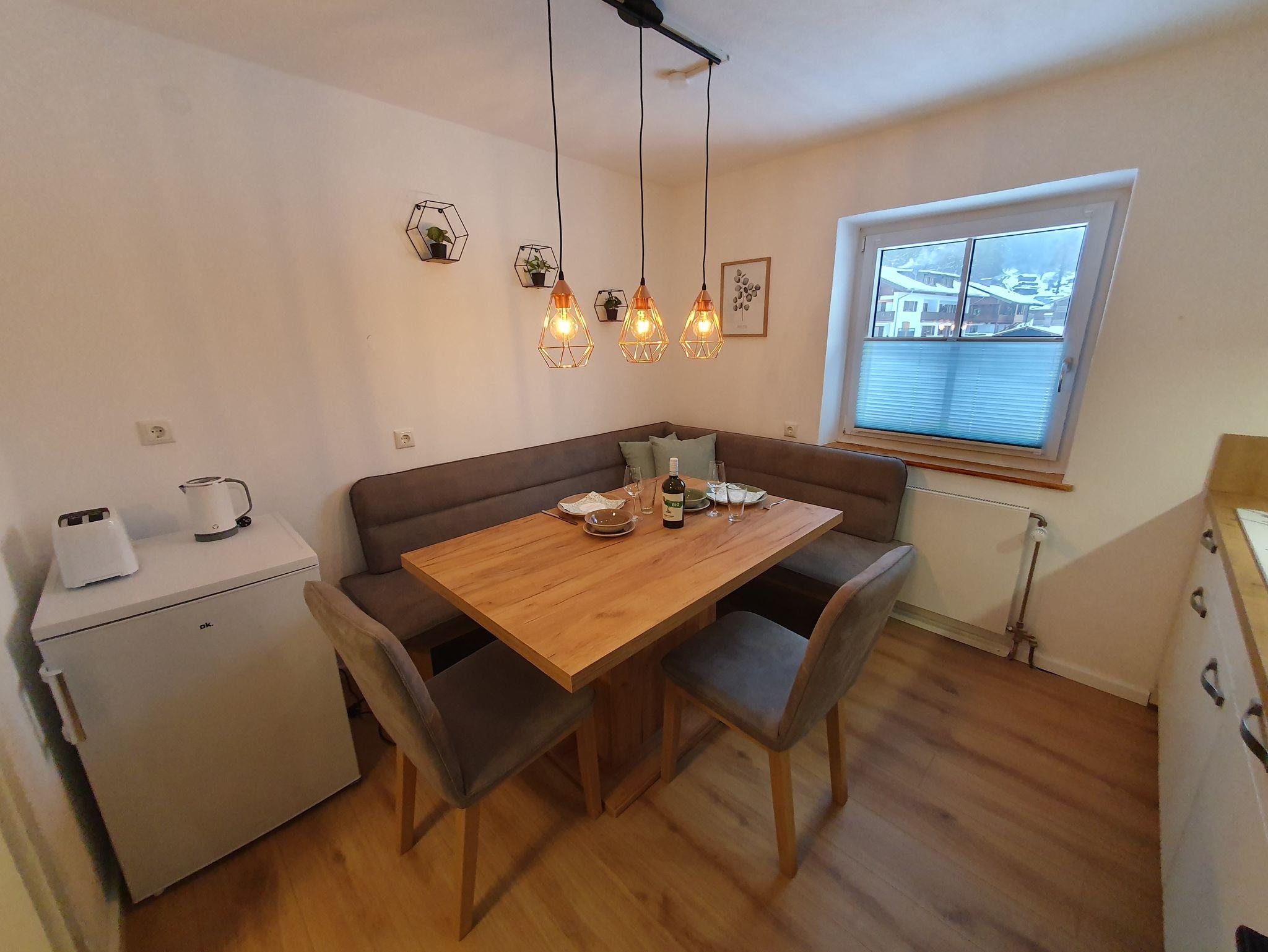 Unsere gemütlich-modern eingerichtete Ferienwohnung Göllblick befindet sich im 1. Stock unseres Bauernhauses und wurde komplett renoviert. Mit 2 getrennten Schlafzimmern (1 Doppelbett, 2 Einzelbetten) und einer großen Schlafcouch im Wohnzimmer können hier bis zu 5 Personen ihren Urlaub verbringen. Die voll ausgestattete Küche (Spülmaschine, Senseo Kaffemaschine, Wasserkocher, Toaster, Backofen mit Ceranfeld) mit gemütlicher Essecke lädt zum gemeinsamen Kochen und Genießen ein. Backpapier, Gewürze, Spülmittel und -lappen, Geschirrtücher und Spülmaschinentabs stehen bereit. Im Badezimmer ist Seife vorhanden sowie 2 Rollen Toilettenpapier für den Anreisetag. Kostenloses WLAN und Parkplätze am Haus sind vorhanden. Auf Anfrage stellen wir für unsere kleinen Gäste gerne kostenfrei ein Reisebett (60cmx120cm),einen Hochstuhl, eine Wickelkommode und einen Windeleimer zur Verfügung. Nach Absprache und gegen Gebühr kann eine Waschmaschine und ein Wäschetrockner genutz werden.