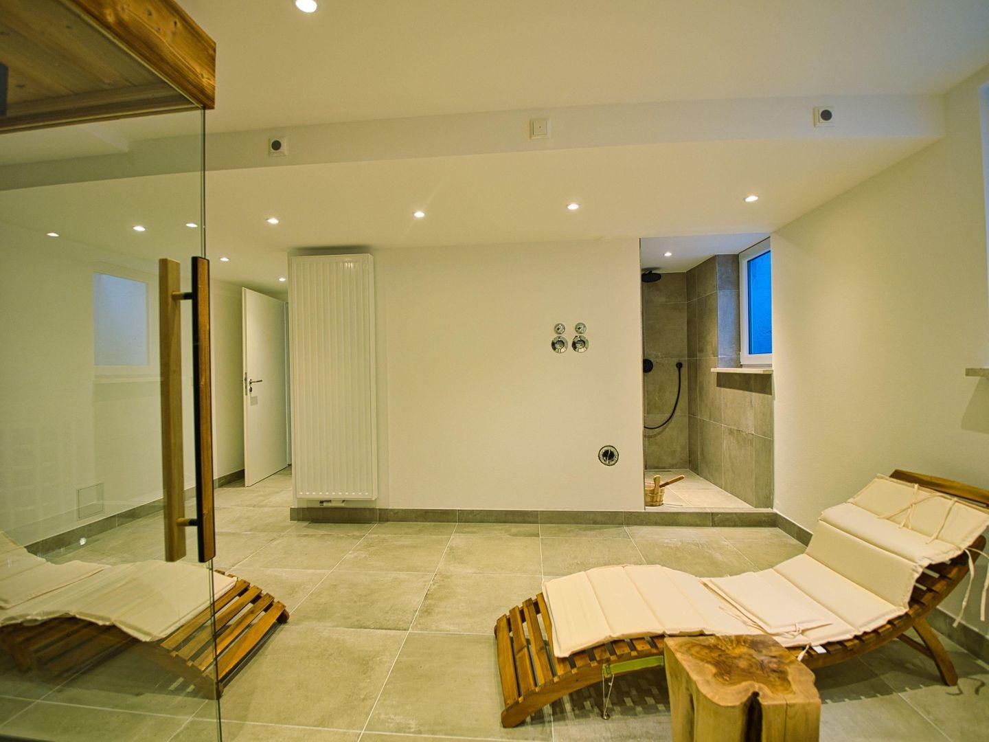 Ein besonderes Highlight ist der private Wellnessbereich mit Sauna. Nach Wanderungen, Skitagen oder aktiven Ausflügen in die Region bietet er einen Ort zum Abschalten und Durchatmen – Wellness ganz privat. Für längere Aufenthalte oder Workation im Grünen stehen zudem Waschmaschine, Trockner und ausreichend Stauraum zur Verfügung.