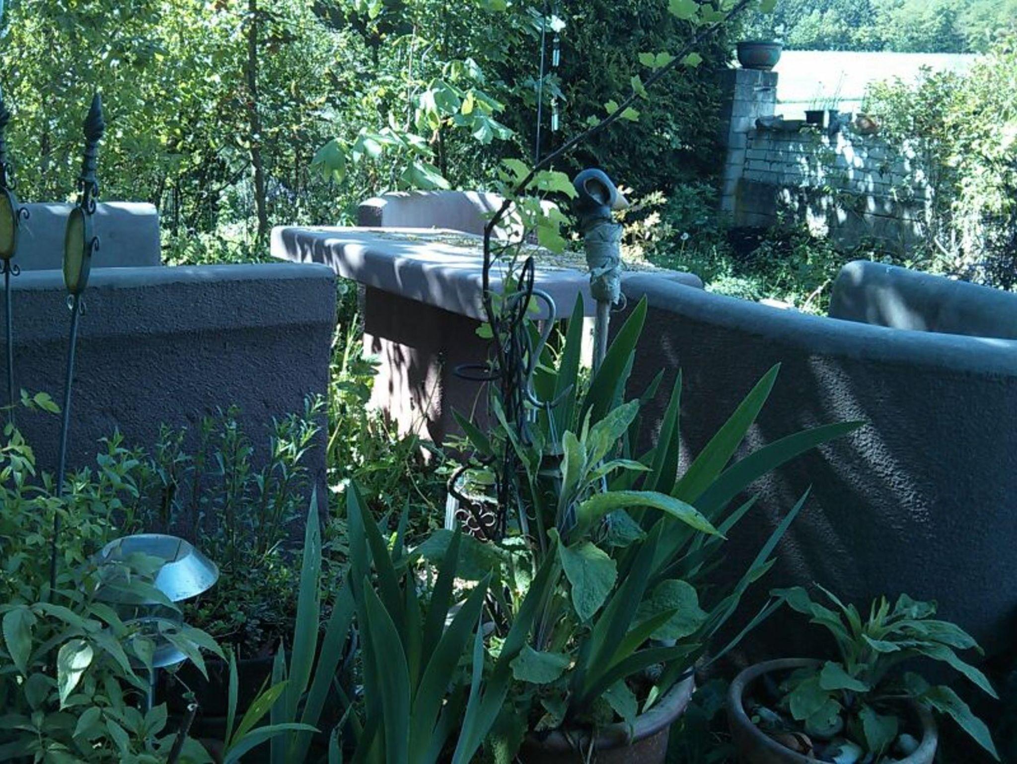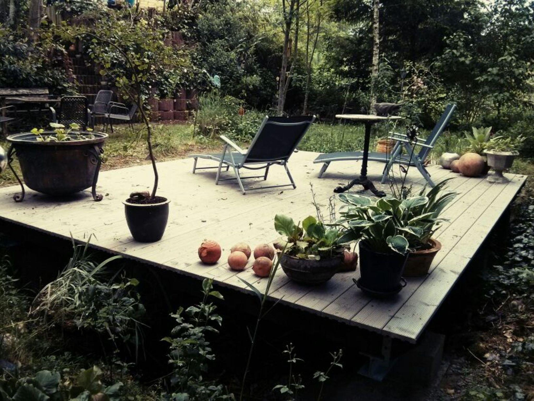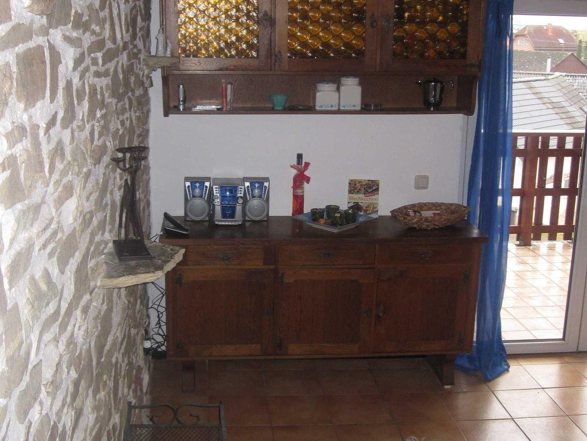 35 m² große Maisonette Wohnung über 2 Etagen mit Balkon, Bruchsteinwand, Kaminofen. Eingang mitten im Garten. Oben Wohn-Schlafbereich, Untere Etage großer Wohn-Essraum mit Ausgang zum Balkon. Gehobene Ausstattung. Küche hervorragend ausgerüstet.