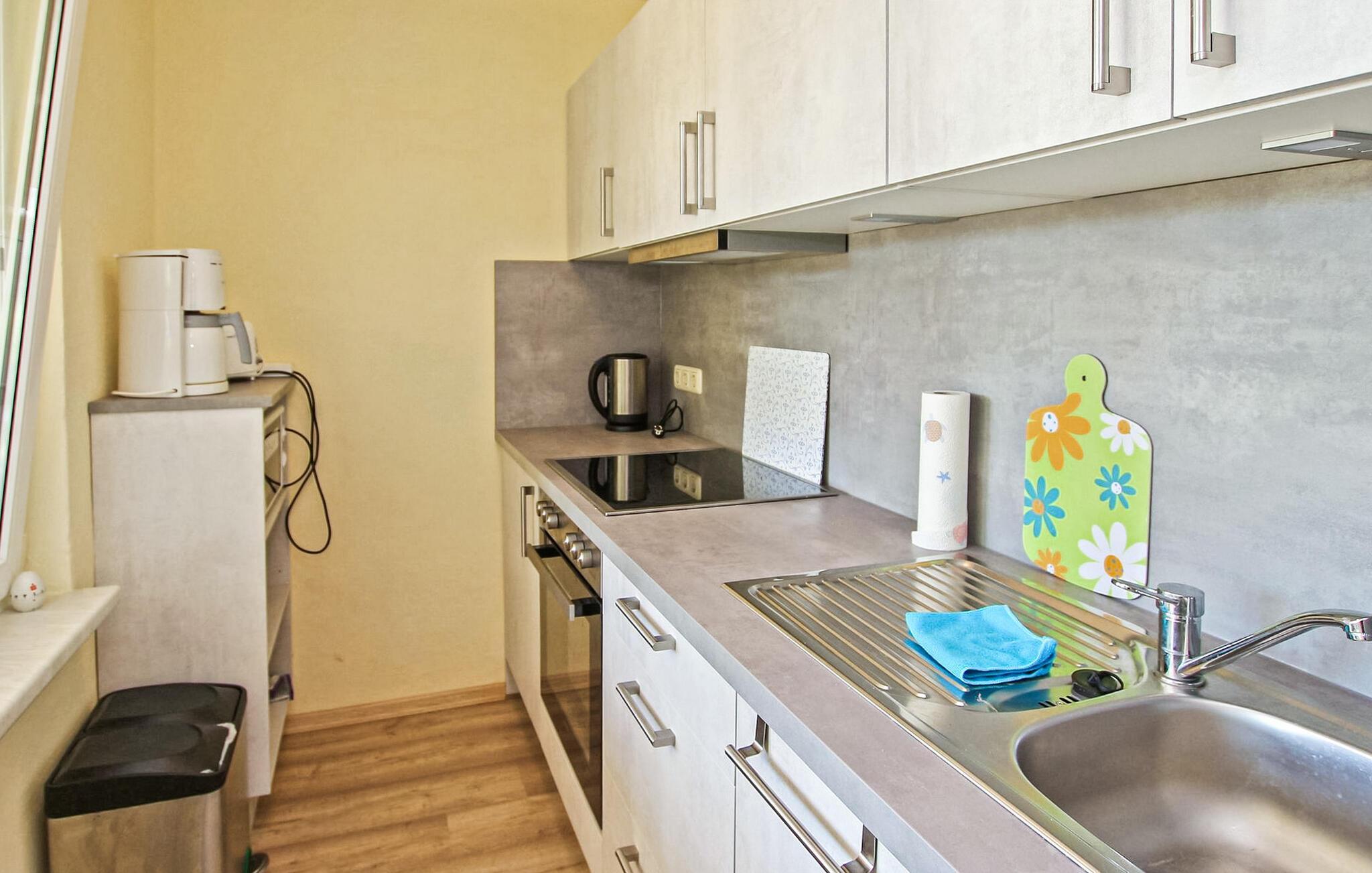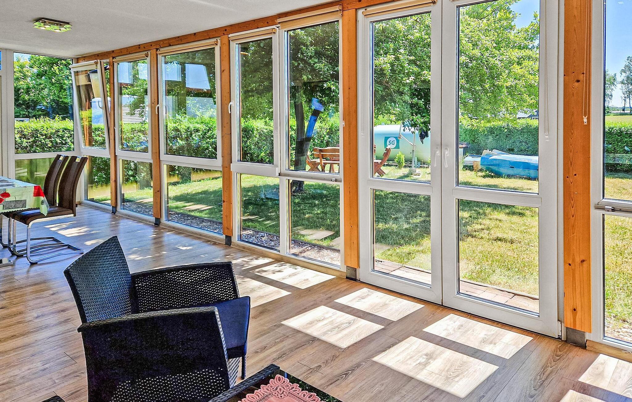 Der ca. 55 qm große Bungalow für bis zu 4 Personen verfügt über einen großen, lichtdurchfluteten Wintergarten mit Esstisch, Sitzecke, Flachbild-TV, einer Küche (E-Herd mit Backofen, Kühlschrank mit Gefriermöglichkeit, Mikrowelle, Kaffeemaschine, Wasserkocher, Toaster), ein Wohnzimmer (Schlafsofa - Zusatzbett für 2 Personen, Flachbild-TV), ein Schlafzimmer (2 Einzelbetten), ein Badezimmer (bodengleiche Dusche/WC) und ein kleiner Flur. Auf dem gemeinsamen Grundstück stehen allen Gästen Sitzmöglichkeiten, Grill, eine Schaukel, ein Sandkasten und ein Fahrradabstellraum, für eine der beiden Wohnungen (nach Anfrage) ein Kinderbett und ein Hochstuhl zur Verfügung. Insgesamt sind zwei Ruderboote und ein Tretboot vorhanden, die nach Absprache kostenfrei nutzbar sind.