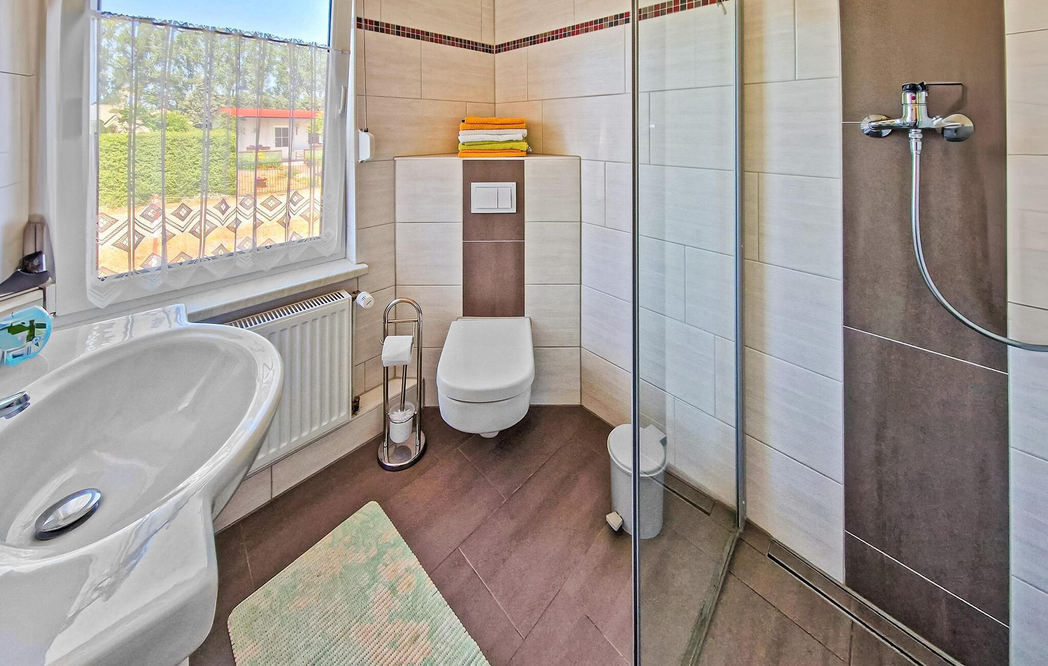 Badezimmer (nr. 1) - WC. Warmes und kaltes Wasser. Dusche