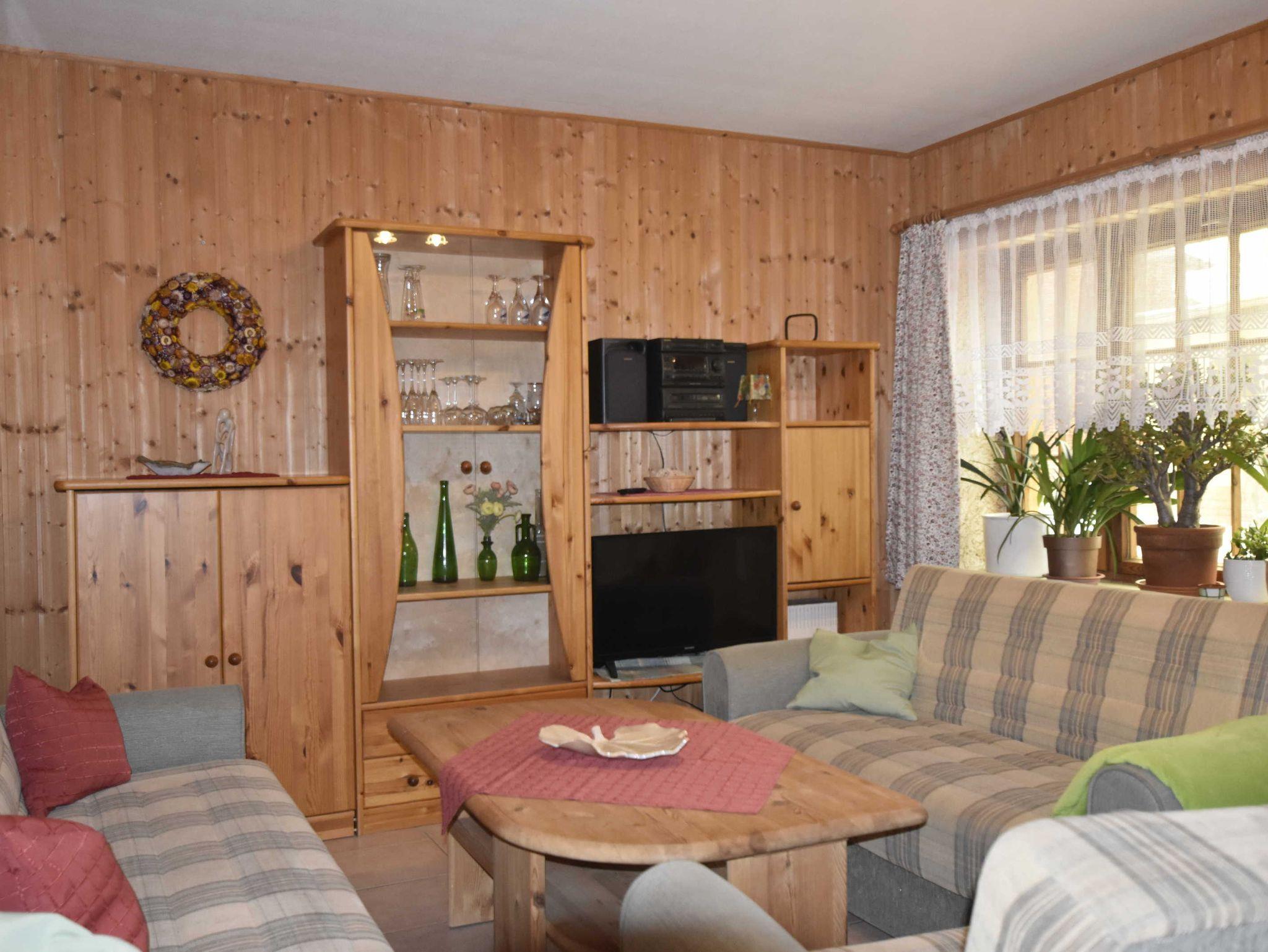 Wohnraum mit Sitzecke (Schlafcouch nur für Kinder geeignet), Sat-TV und Radio.