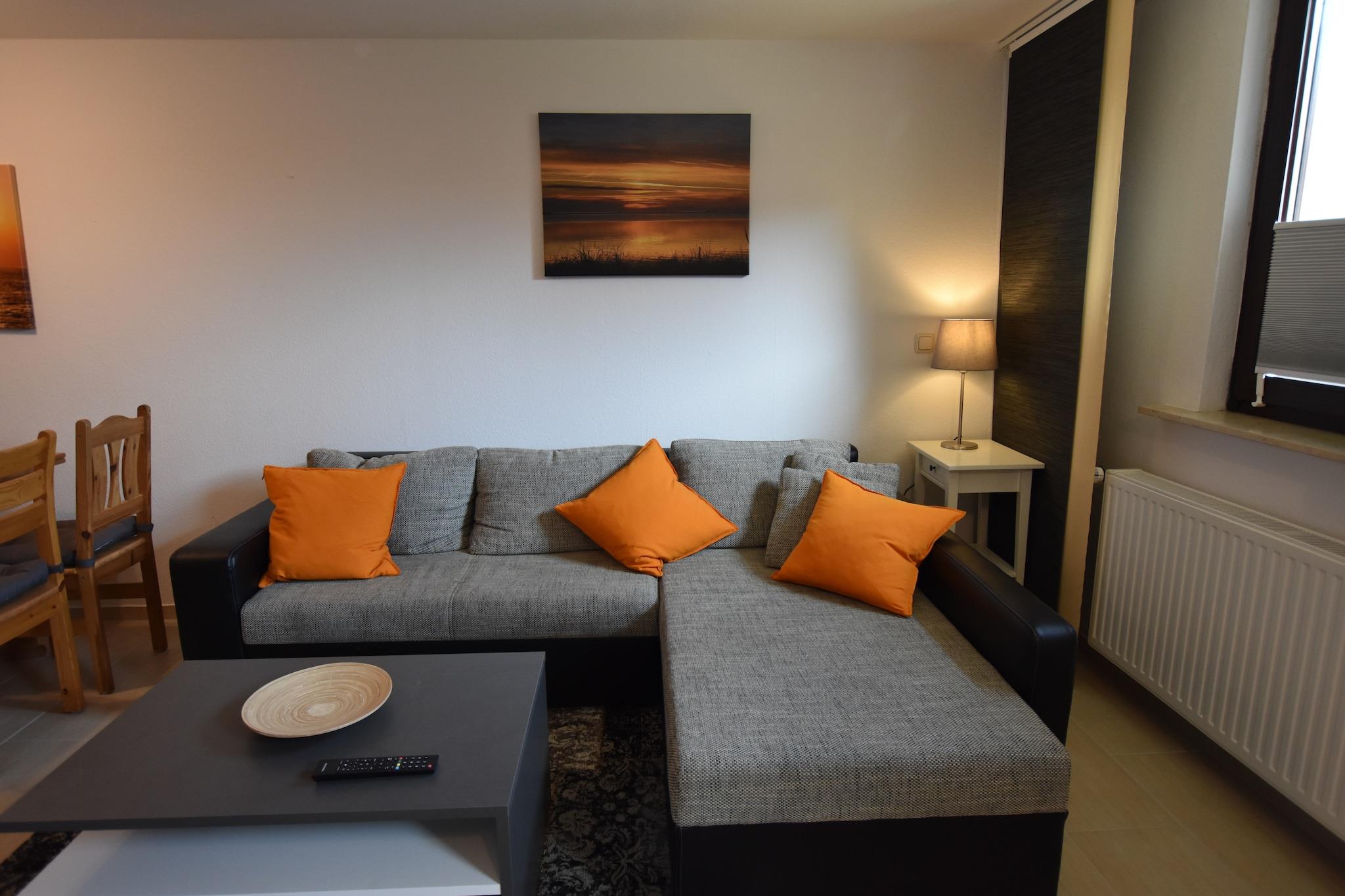 Parterre: (offene Küche(Wasserkocher, Toaster, Kochherd, Kaffeemaschine, Backofen, Mikrowelle, Spülmaschine, Kühlschrank), Wohn-/Schlafzimmer(Schlafcouch 1 Pers., Doppelbett(Doppelspannbetttuch, Zwei Einzelbettdecken), TV(Satellit), Esstisch, DVD-Spieler, Radio, CD-Spieler), Schlafzimmer(Doppelbett), Badezimmer(Dusche, Waschbecken, Toilette), Heizung) Terrasse, Garten(Gemeinschaftliche Nutzung mit dem Eigentümer und anderen Gästen ), Gartenmöbel, Grill, Parkplatz, Spielgeräte, Rutsche