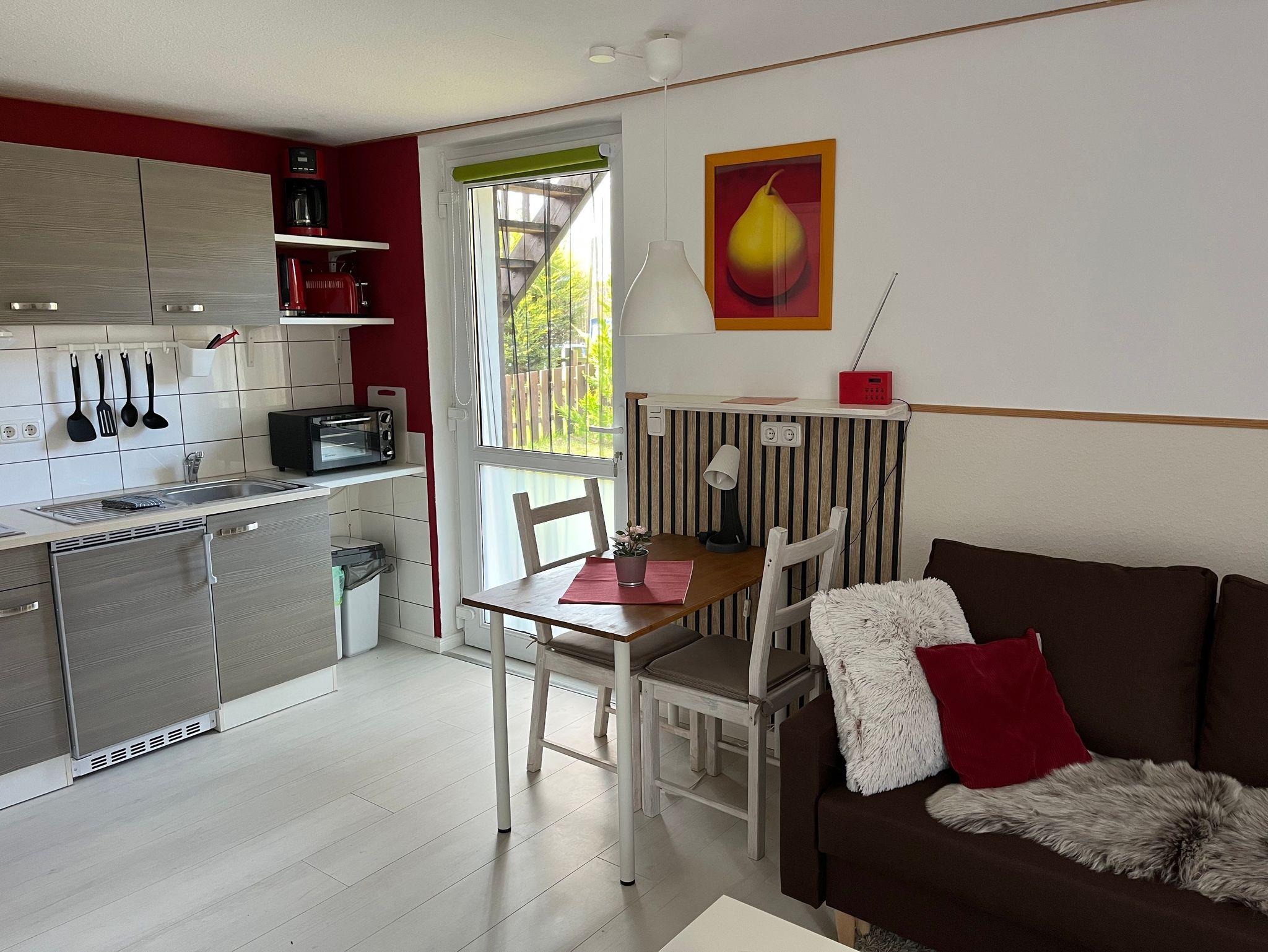 1-Raum-Ferienwohnung mit Wohn/Schlafraum im Erdgeschoß.