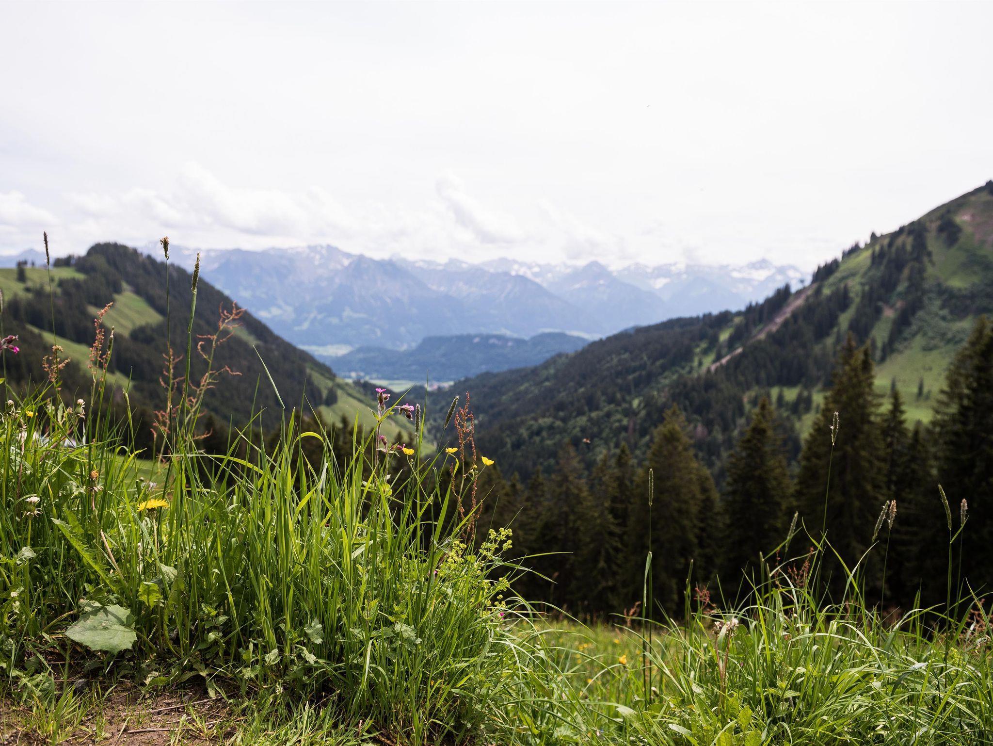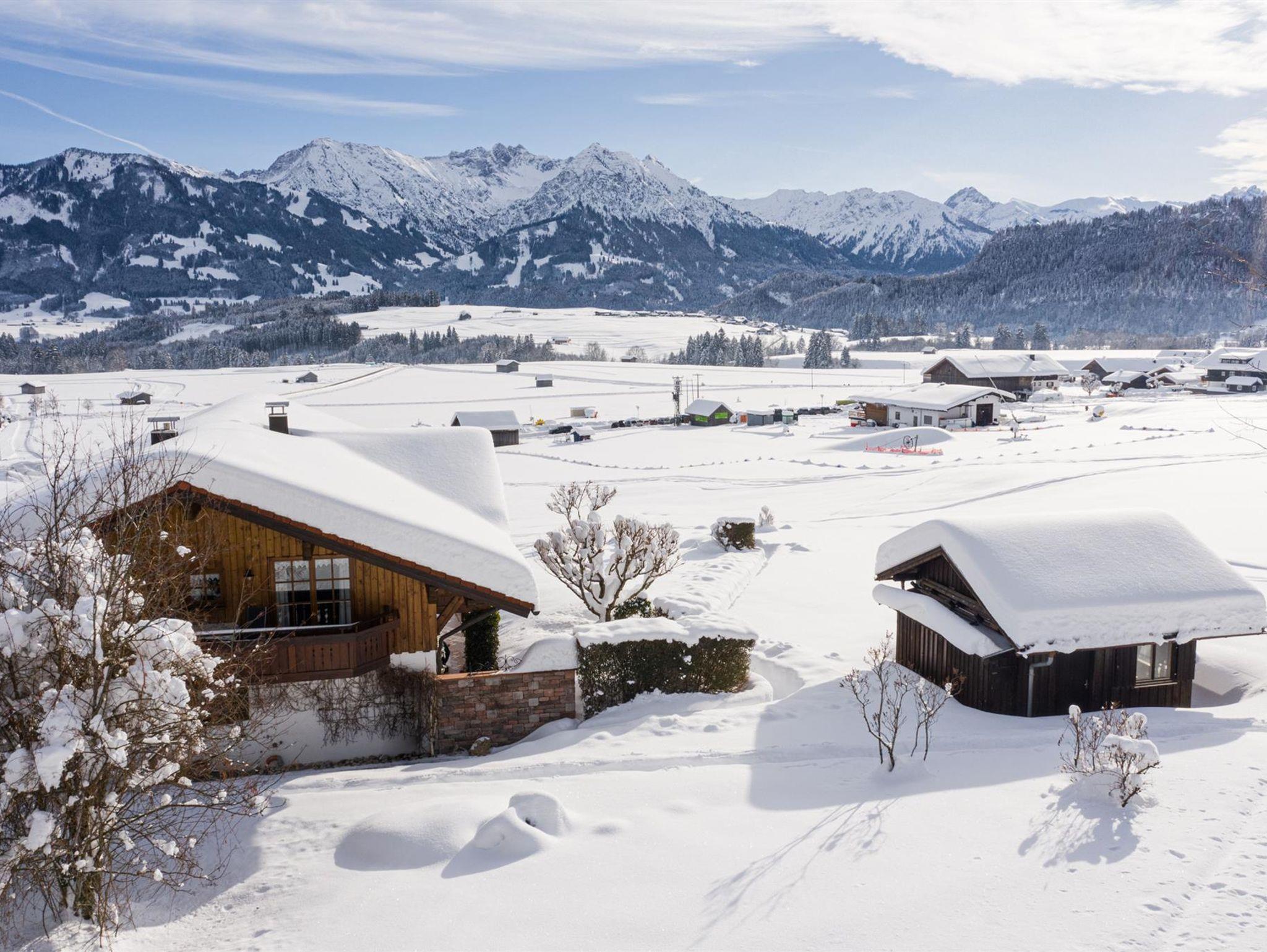 Unser Haus liegt in freier, traumhafter Lage inmitten grüner, saftiger Wiesen mit unverbautem Blick in die Allgäuer Bergwelt.