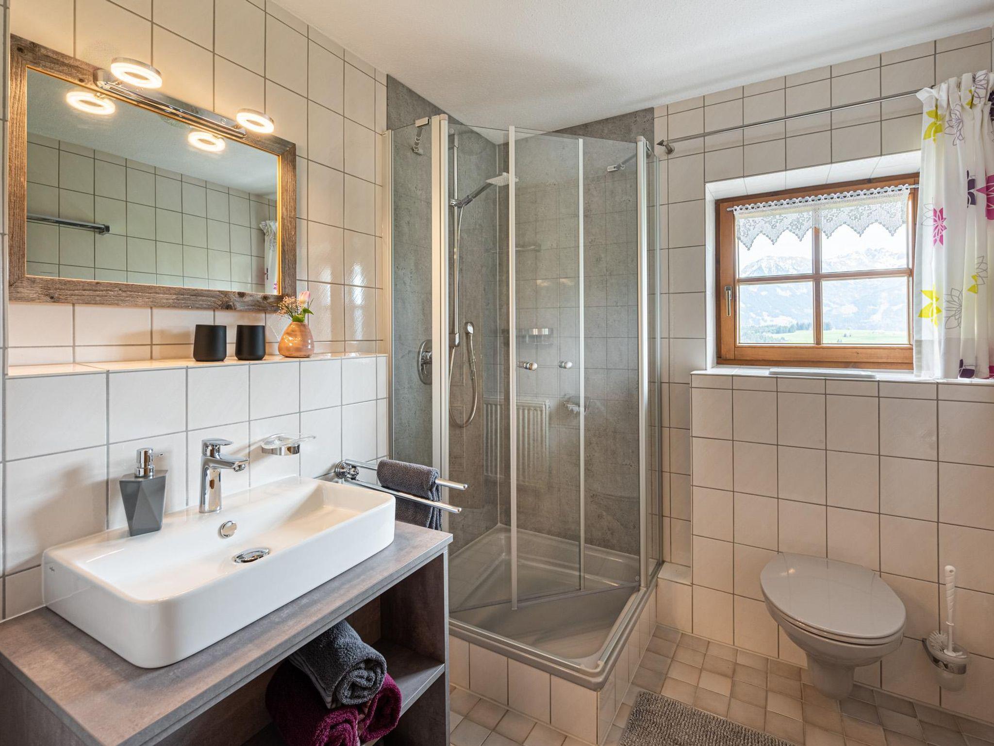 Ferienwohnung mit einmaligem unverbautem Blick auf die Allgäuer Bergkette. Die gemütliche und komfortabel ausgestattete Wohnung ist 50qm groß und verfügt über ein separates Schlafzimmer, separates Wohnzimmer mit ausziehbarer Doppelcouch, separater Wohnküche, Du/WC sowie über einen West-und einen Süd Balkon.