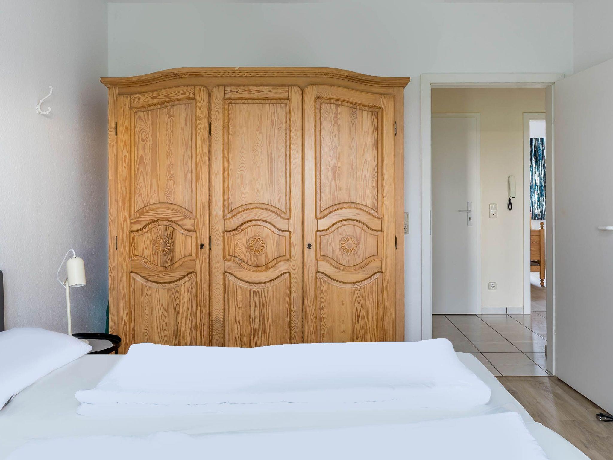 Das Schlafzimmern ist mit einem bequemen Doppelbett (180x200cm), SAT-TV und einem Kleiderschrank für Ihre Urlaubsgarderobe eingerichtet. Im Gäste-/ Kinderzimmer finden Sie zwei Einzelbetten (je 90x200cm) und eine kleine Kommode.