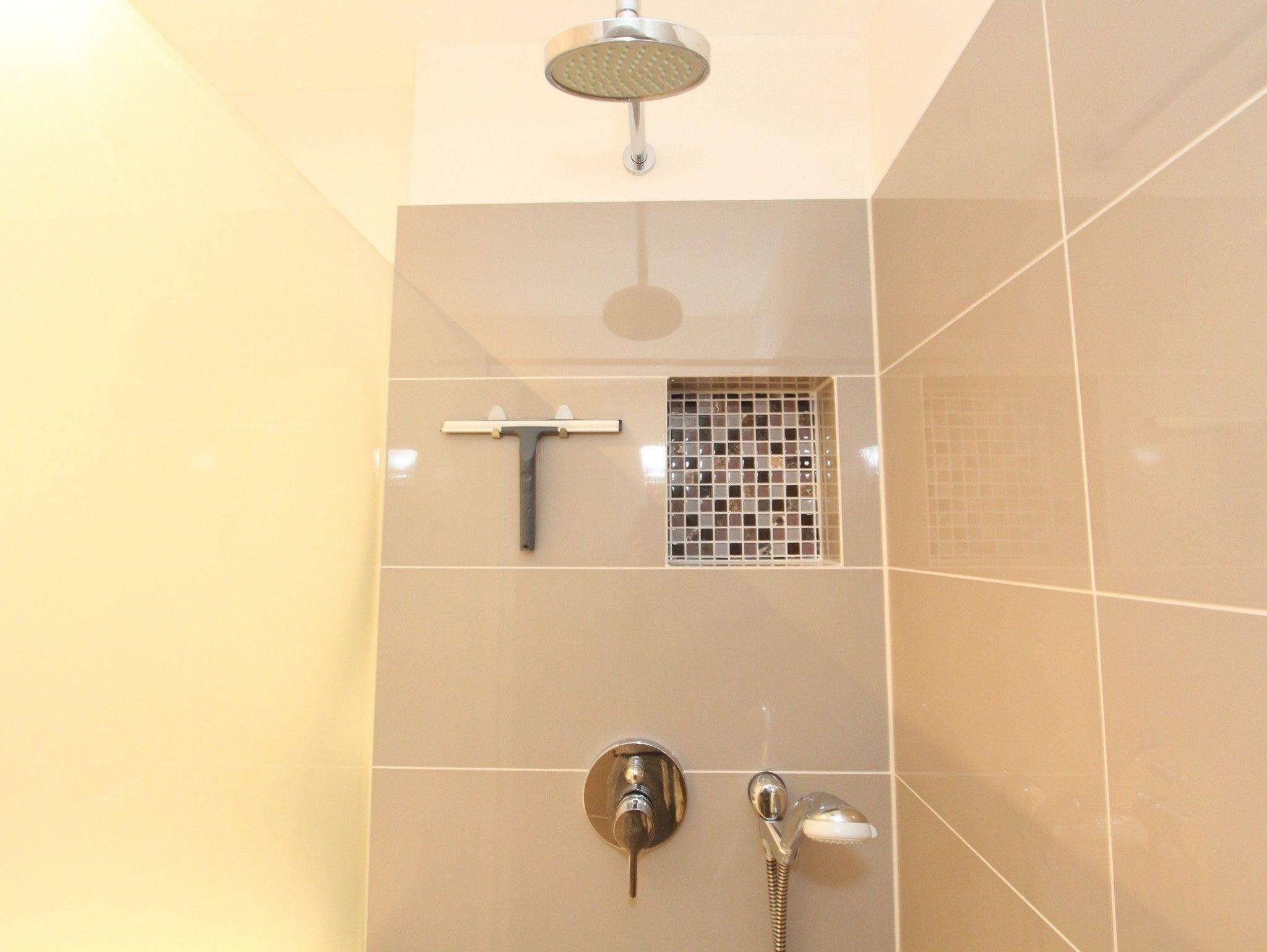Das Badezimmer verfügt neben einer Dusche mit sehr flachem Einstieg (nur 4cm Höhe!) und einem WC auch über einen Föhn.