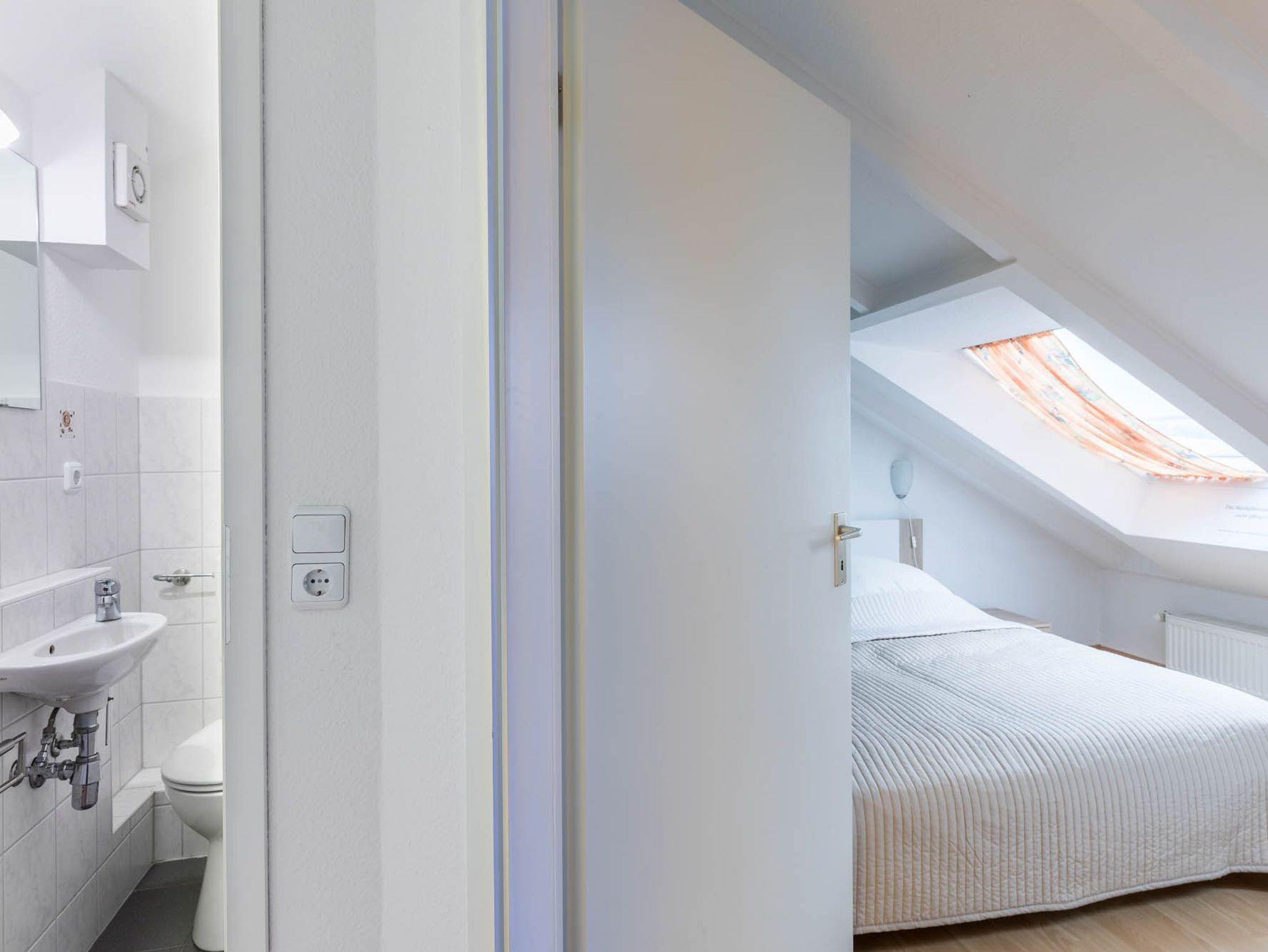 Die beiden Schlafzimmer und ein Gäste-WC befinden in der zweiten Wohnebene, im Dachgeschoss, des Hauses.