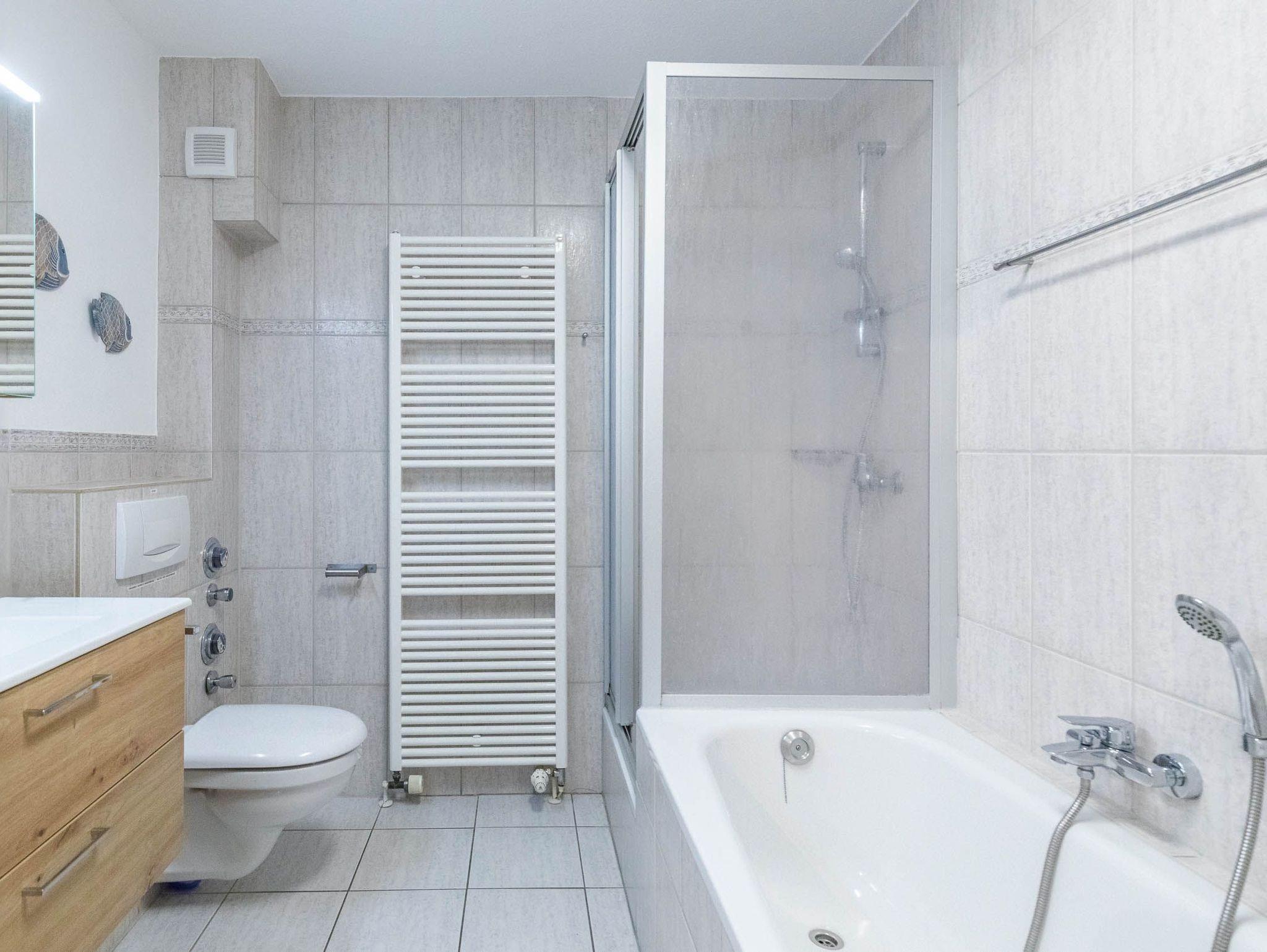 Die Wohnung verfügt über ein geräumiges, 6 qm großes, Vollbad mit WC, Dusche und einer großen Badewanne.