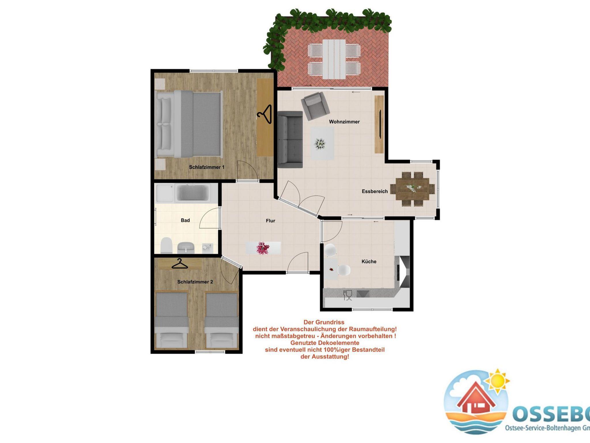 Komfortable 3-Zimmer-Ferienwohnung in Boltenhagen mit Terrasse und WLAN, ideal für Familien und Haustiere.