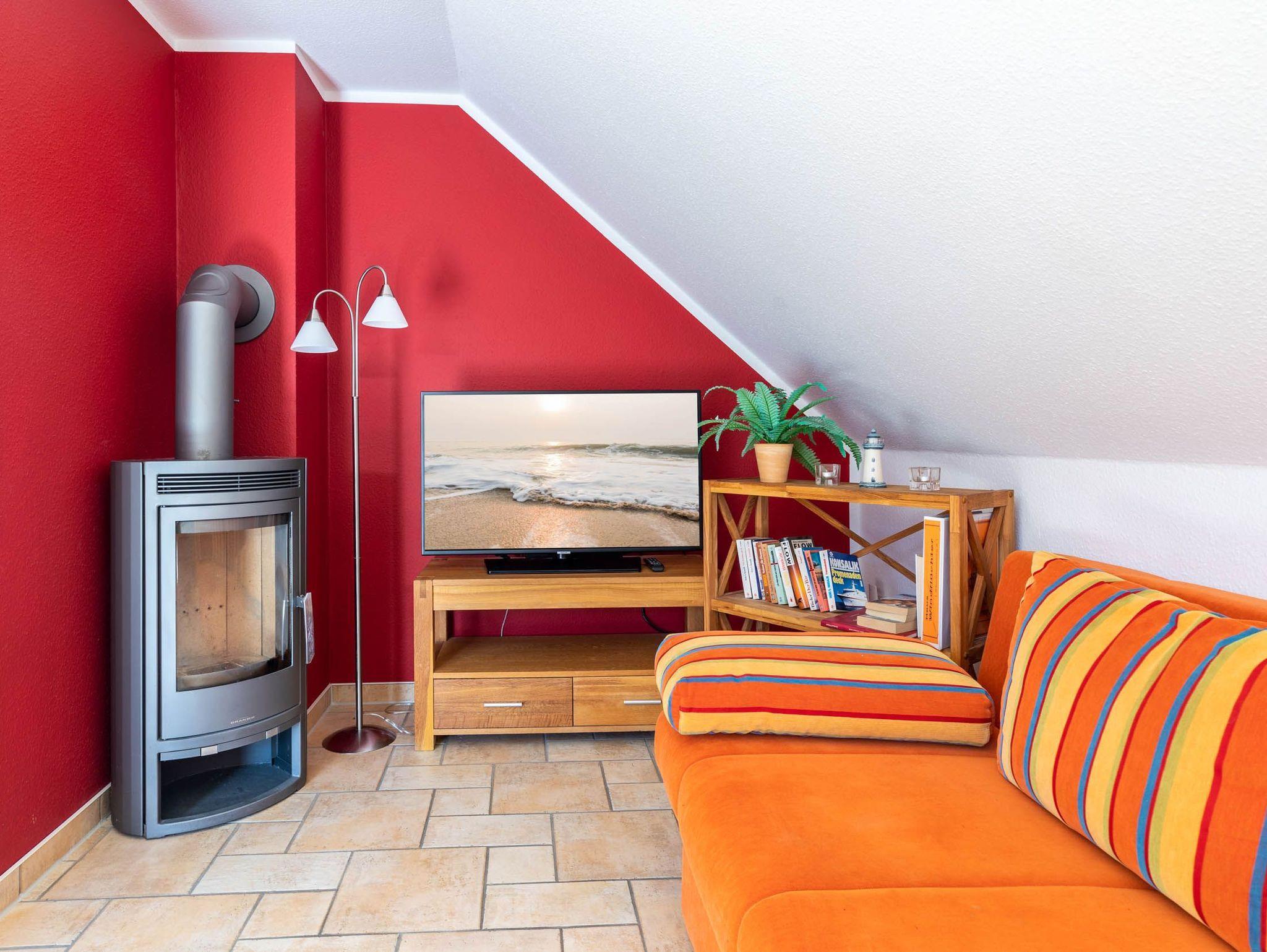 Im Erdgeschoss finden Sie den Wohnbereich mit SAT-TV, DVD-Player, Stereoanlage, zwei Sofas mit Schlaffunktionen für insgesamt zwei Personen, Kamin und offener Küchenzeile mit vielen E-Geräten wie Cerankochfeld, Mikrowelle, ein kleiner Minibackofen, Geschirrspüler, Kühlschrank mit Gefrierfach uvm.