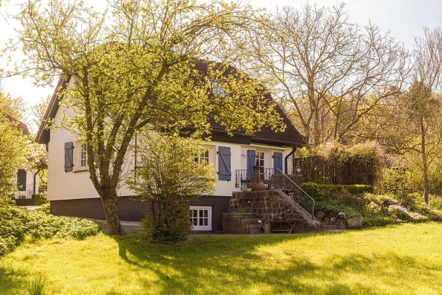 Die Grundstücksgröße, überwiegend mit Rasenflächen, beträgt 2500 qm und grenzt an einen Teich mit Seeterrasse. Das Haus liegt am Rand der Siedlung, und man hat einen freien Blick auf die Felder. Der Niswald mit altem Baumbestand lädt zu Spaziergängen ein.