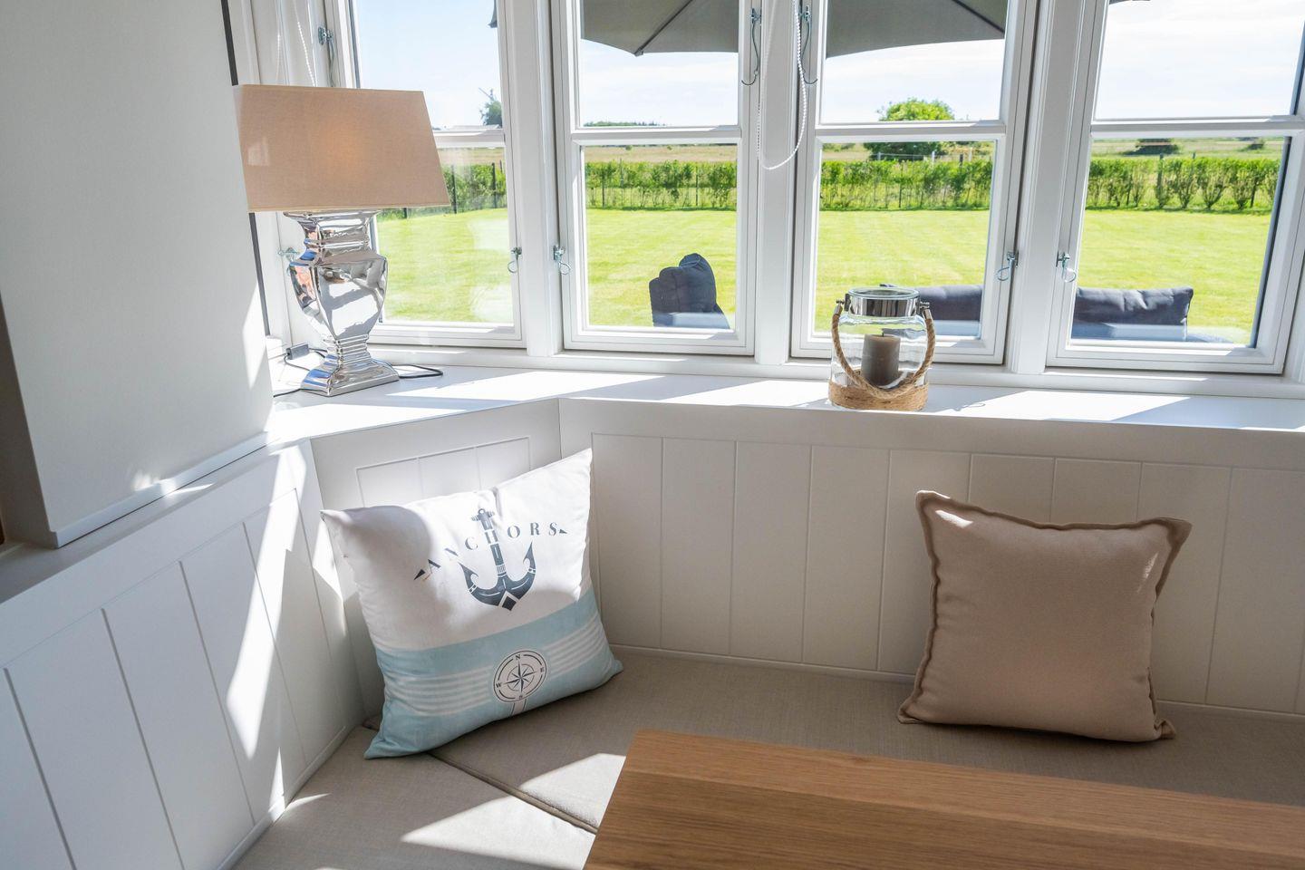 Das Nordseehaus Föhr liegt unweit der Borgsumer Mühle; Bäcker, Restaurant und Café sind fußläufig erreichbar.