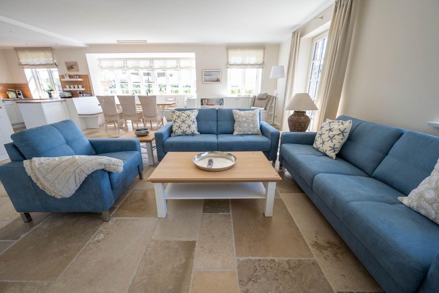 Exklusives Nordseehaus Föhr mit Sauna, Kamin und Meerblick für erholsame Familienferien.
