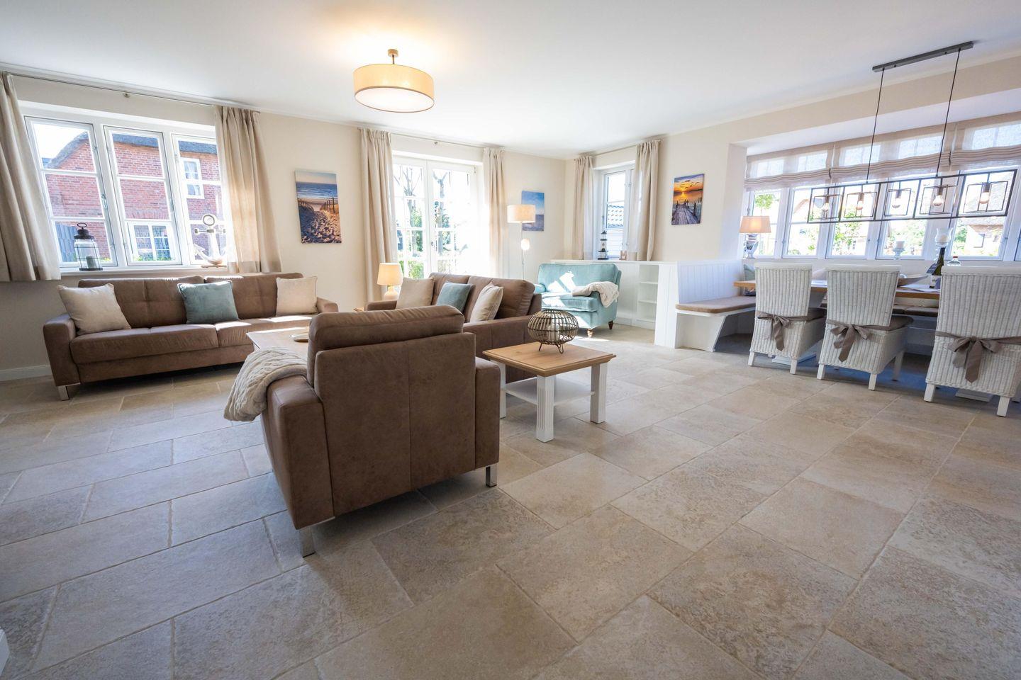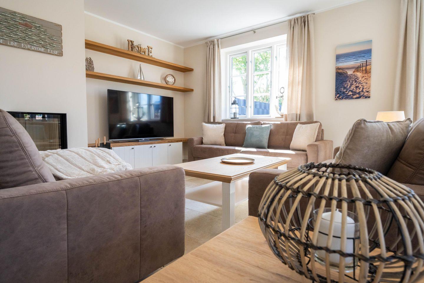 Genießen Sie exklusiven Komfort mit Sauna und Kamin im Nordseehaus Föhr, nur 1000 m vom Strand entfernt.