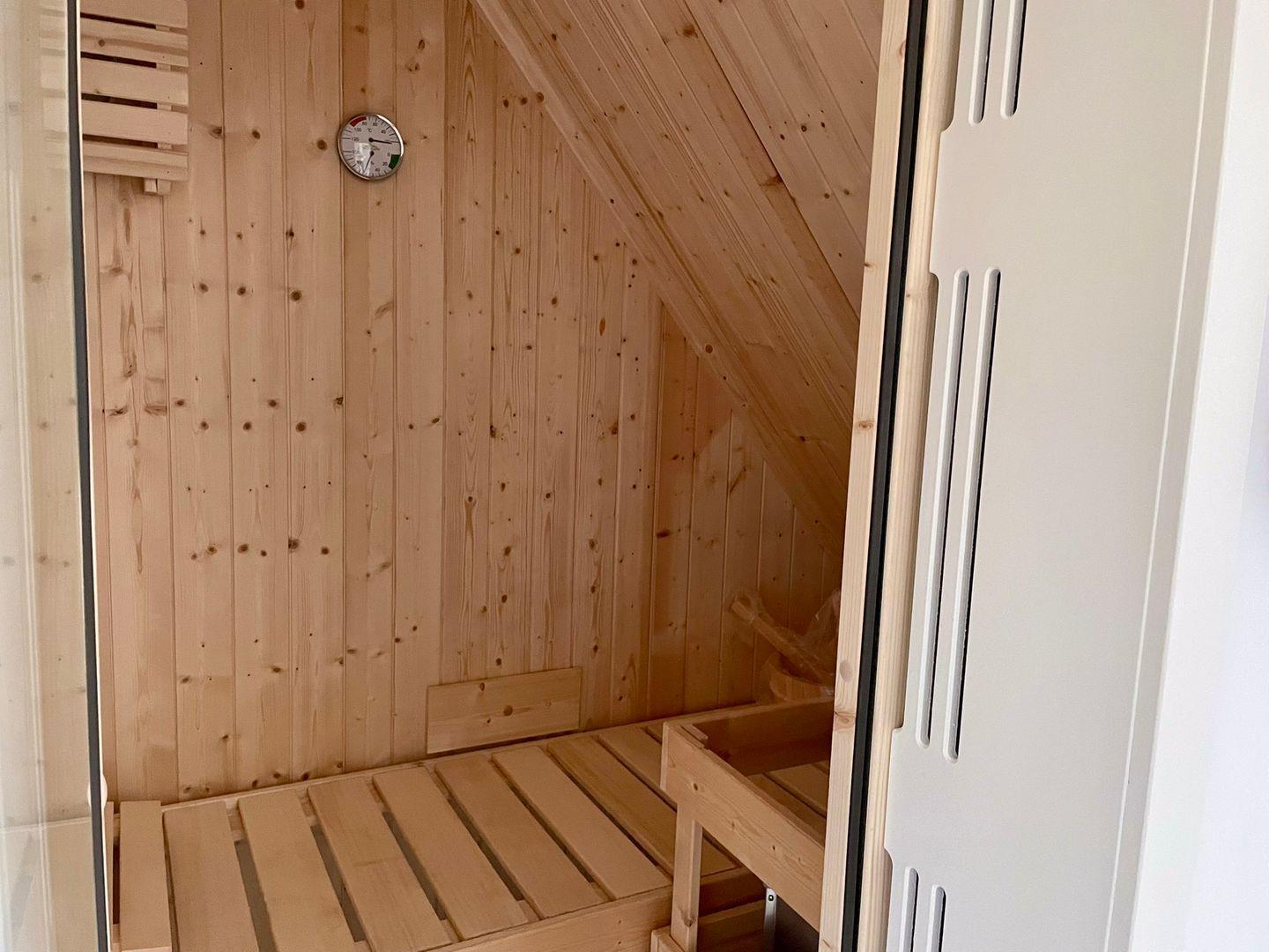 Zu den Highlights der Ferienunterkunft zählen wir u. a. die hauseigene Sauna, die Terrasse und die ruhige Lage in einer Seitenstraße.