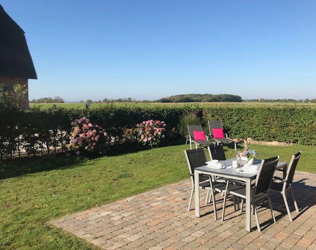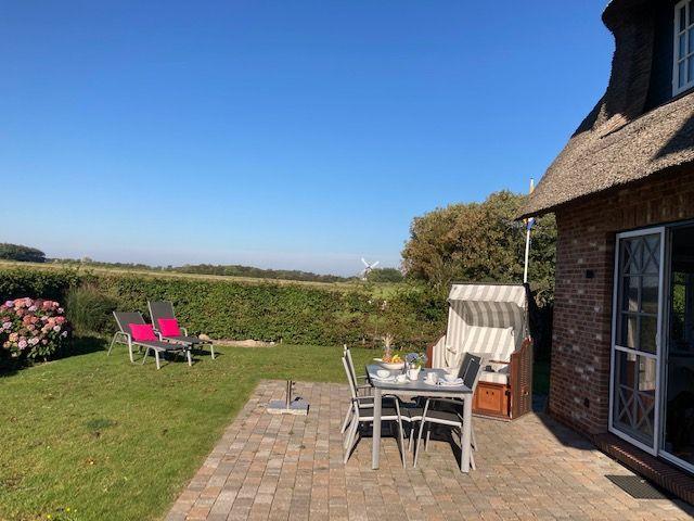 Das Haus Mühlenblick ist ein ruhiges Reetdachhaus mit traumhaftem Blick zur Nordsee und Amrum.