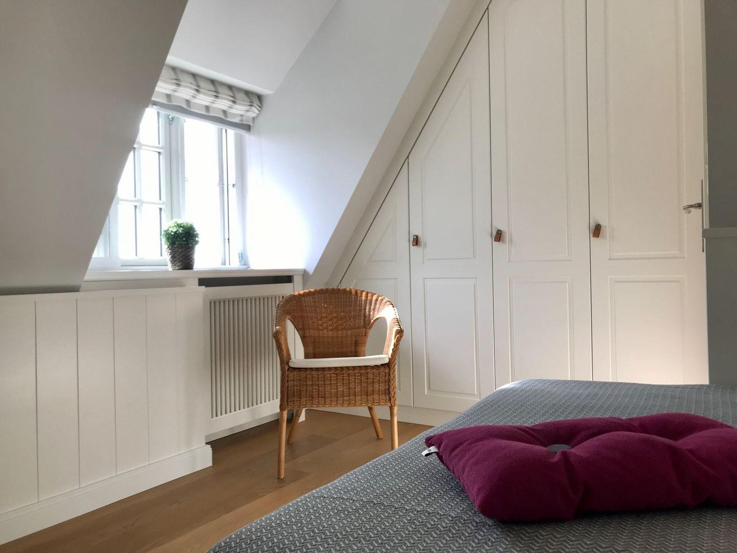 Im Obergeschoss befinden sich die 3 Schlafzimmer sowie ein weiteres Badezimmer mit Wanne und Raindance-Dusche. Im Dachgeschoss erwartet Sie ein Rückzugsraum mit Sauna und Blick auf die Borgsumer Mühle.