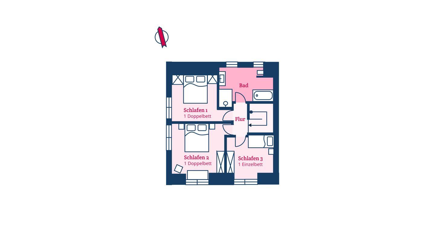 Das Haus Mühlenblick, welches vom Deutschen Tourismusverband mit 5 Sternen ausgezeichnet wurde, verfügt über 3 Schlafzimmer und 2 Bäder und bietet somit Platz für bis zu 5 Personen.