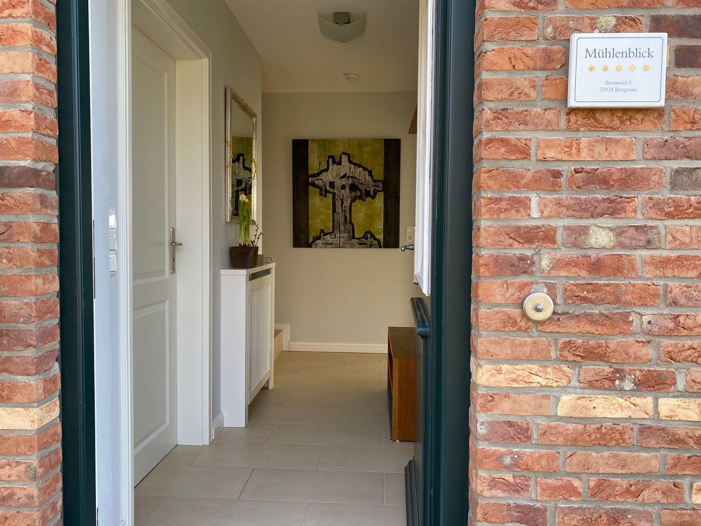 Das Haus Mühlenblick liegt unweit der Borgsumer Mühle; Bäcker, Restaurant und Café sind fußläufig erreichbar.