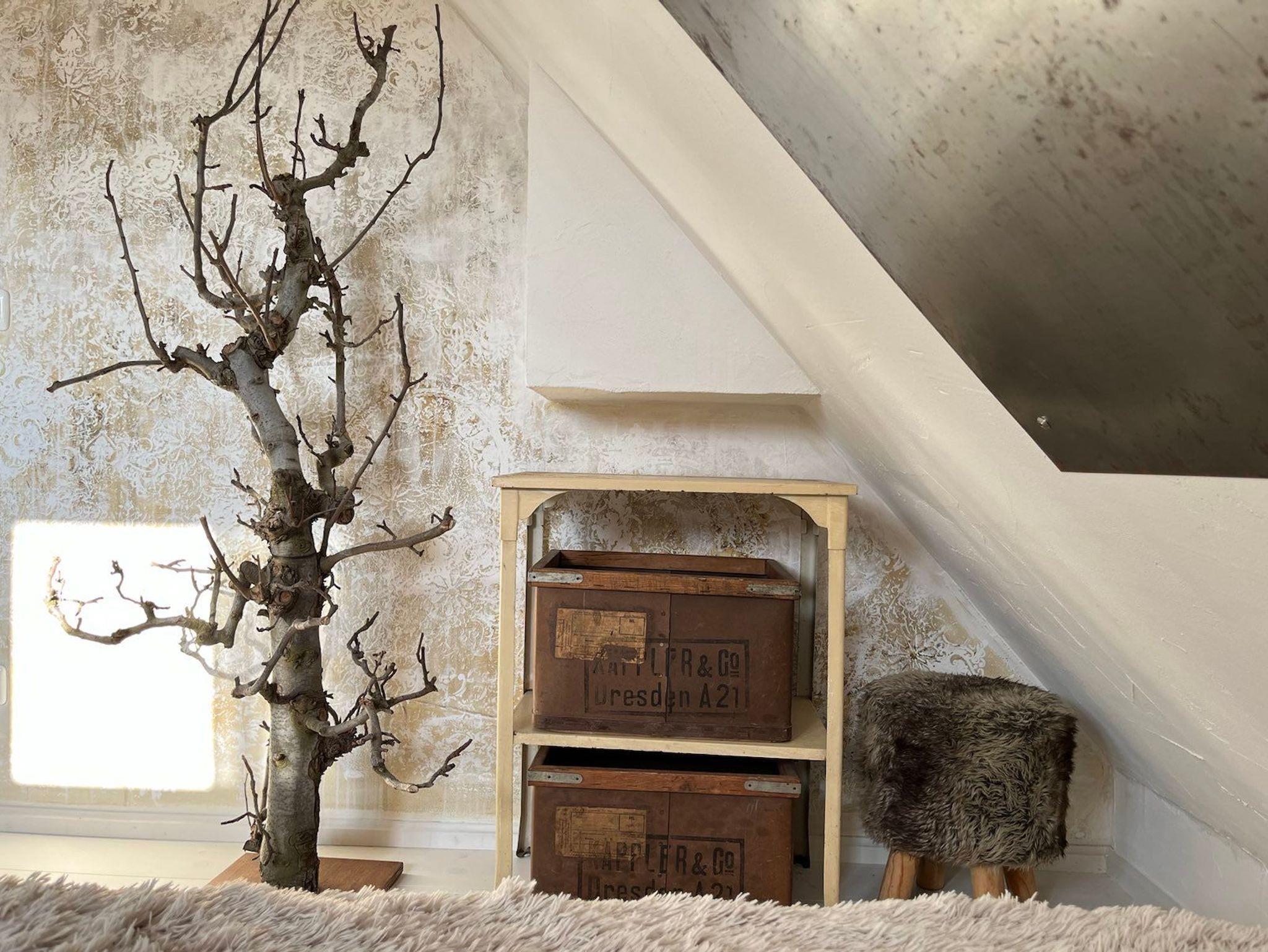 Die Einrichtung der Ferienwohnung besticht durch eine außergewöhnliche Auswahl von Mobiliar im Vintage Style. In der Inneneinrichtung ist eigentlich nichts von der Stange und so oft es ging nachhaltig und mit Liebe zum Detail gestaltet.
