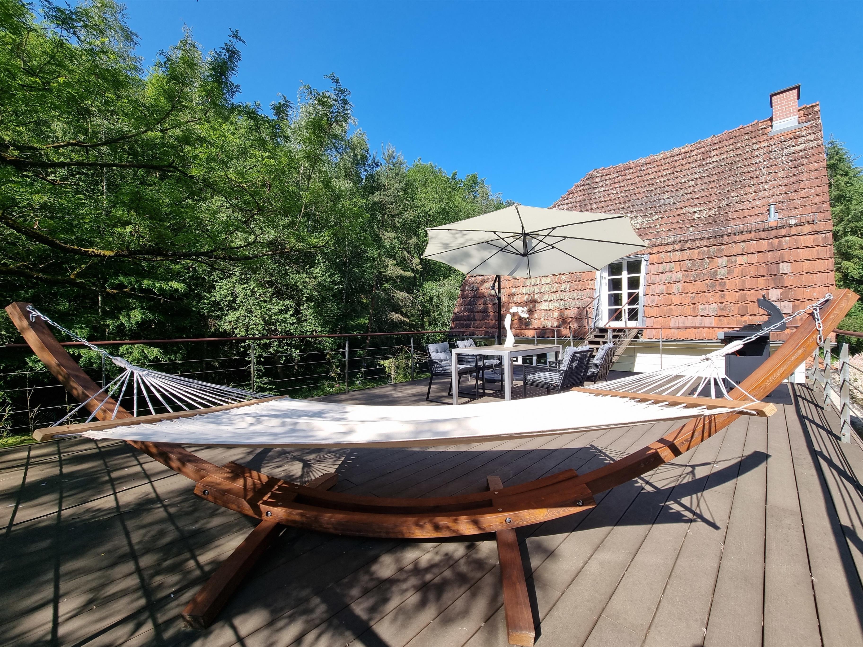 lichtdurchflutete 122 qm in Deluxe Ausstattung auf 2 Etagen für 4 Personen, plus 70 qm Dachterrasse in Waldrandlage