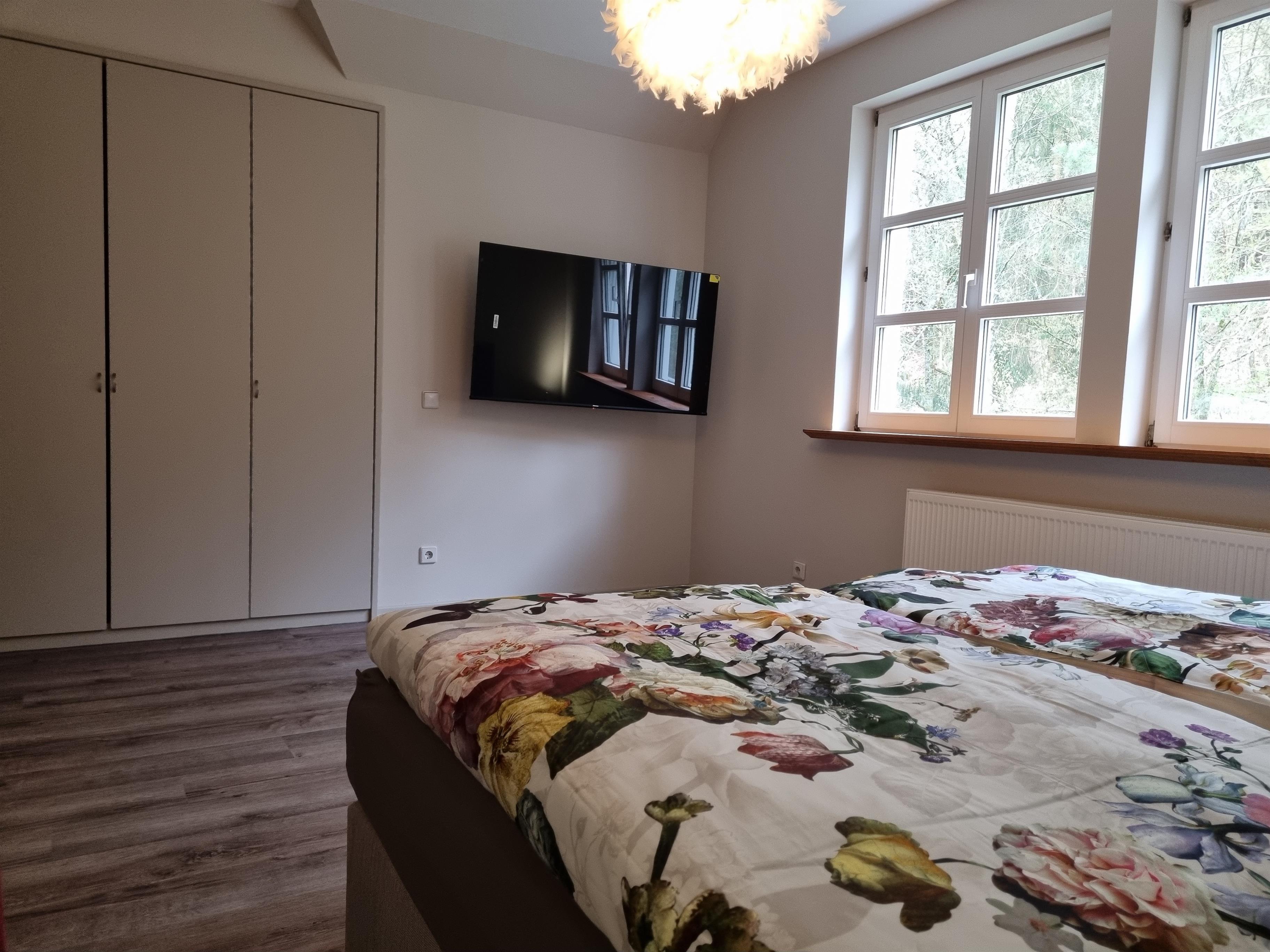 2 klimatisierte Schlafzimmer mit jeweils großzügigem Boxspringbett Größe 180x200, 55 Zoll Smart TV