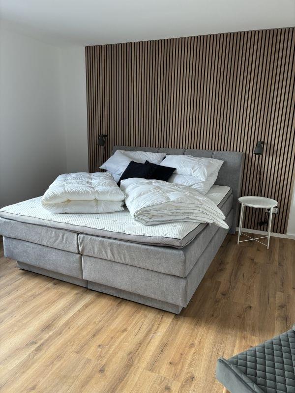 Diese Wohnung befindet sich im 1. Obergeschoss und hat eine Größe von ca. 91m². Sie verfügt über 2 Schlafzimmer, die jeweils mit einem komfortablen Doppelbett (Boxspring) für erholsame Nächte und 1 Schlafzimmer mit je 2 Einzelbetten ausgestattet ist. Eine voll ausgestattete Küche für Selbstversorger und ein gemütliches Wohnzimmer mit TV. Kostenloses W-Lan steht ihnen ebenfalls zu Verfügung. Außerdem ein modernes Badezimmer mit bodentiefer begehbarer Dusche und einem Haarföhn. Zudem steht im Keller eine Waschmaschine und ein Trockner zur Verfügung. Abstellmöglichkeiten für Fahrräder, Schlitten, etc sind vorhanden. Außerdem gibt es eine Parkmöglichkeit pro Wohnung auf dem Grundstück. Die Wohnung verfügt optional über Bettwäsche und Handtücher.