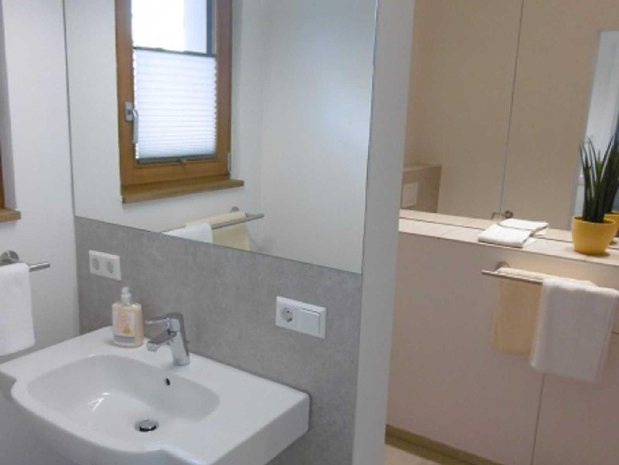 Einzimmerwohnung (1 OG) im Schopf mit eigenem Eingang und kleinem Balkon. Fließenboden mit Fußbodenheizung und voll ausgestattete Küche mit Indukionskochfeld, Spülmaschine, Mikrowelle, Kaffeemaschine und Toaster. Doppelbett mit den Maßen 180/200 und mit einer Spiegelwand im Bad. Vor Ort können Sauna gegen Gebühr gebucht werden , Waschmaschine und Trockner sind im Gemeinschaftsraum vorhanden.