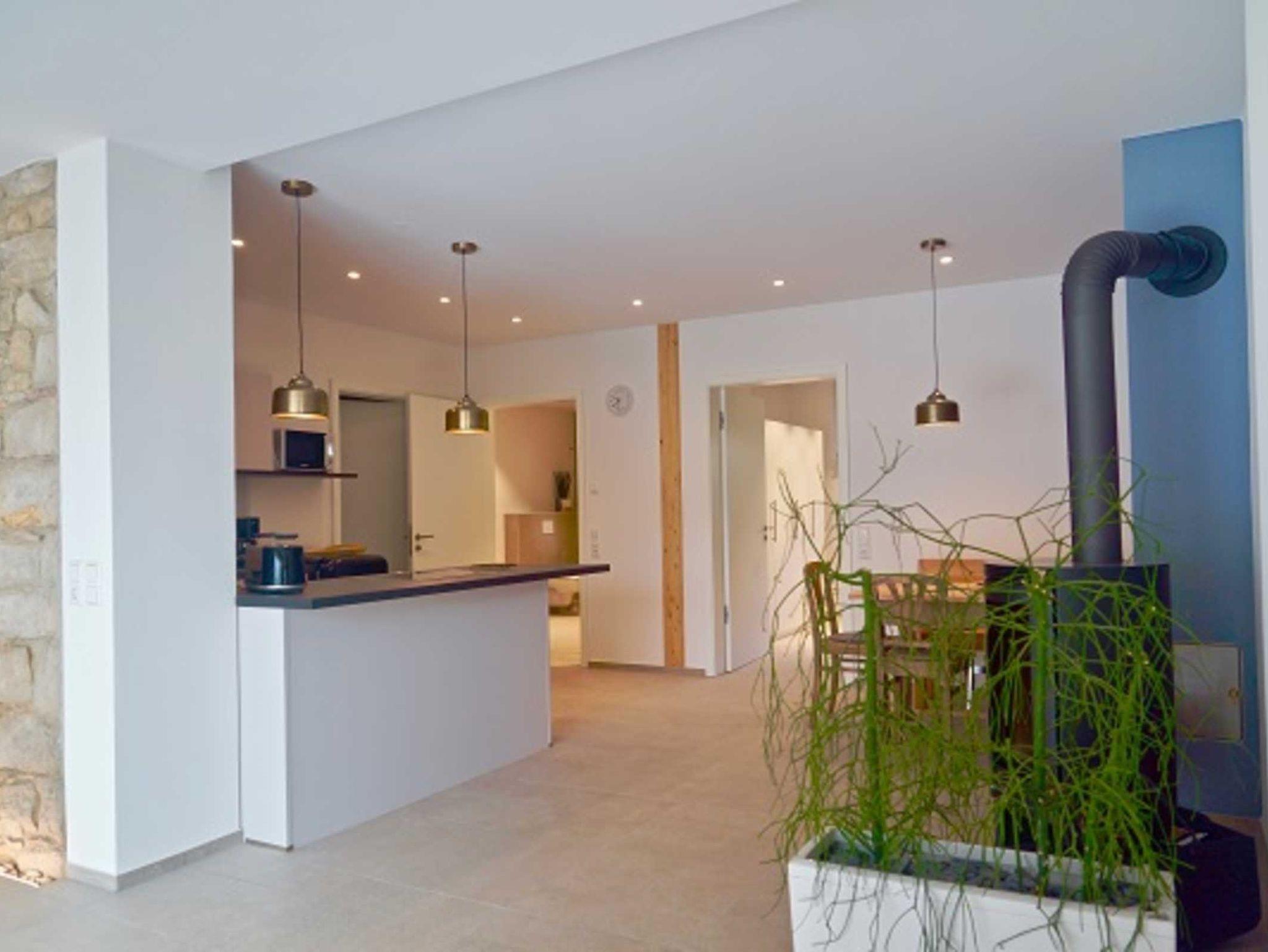 Nach Süden ausgerichtete, barrierefreie nichtraucher Erdgeschosswohnung mit großer Terrasse. Fliesenboden mit Fußbodenheizung, einem Schwedenofen und Tresor. Voll ausgestattete Küche mit Indukionskochfeld, Spülmaschine, Mikrowelle, Kaffeemaschine und Toaster. 1 Schlafzimmer mit Doppelbett 180x200 cm, ausziehbares Schlafsofa 120x190 cm im Wohnraum, 1 Zusatraum mit einem Etagenbett, 120x200m ein Kinderbett aufgestellt werden .Großes Badezimmer. Vor Ort können Sauna (gegen Gebühr),Holz für Schwedenofen ( gegen Gebühr) Waschmaschiene,Trockner gebucht werden.