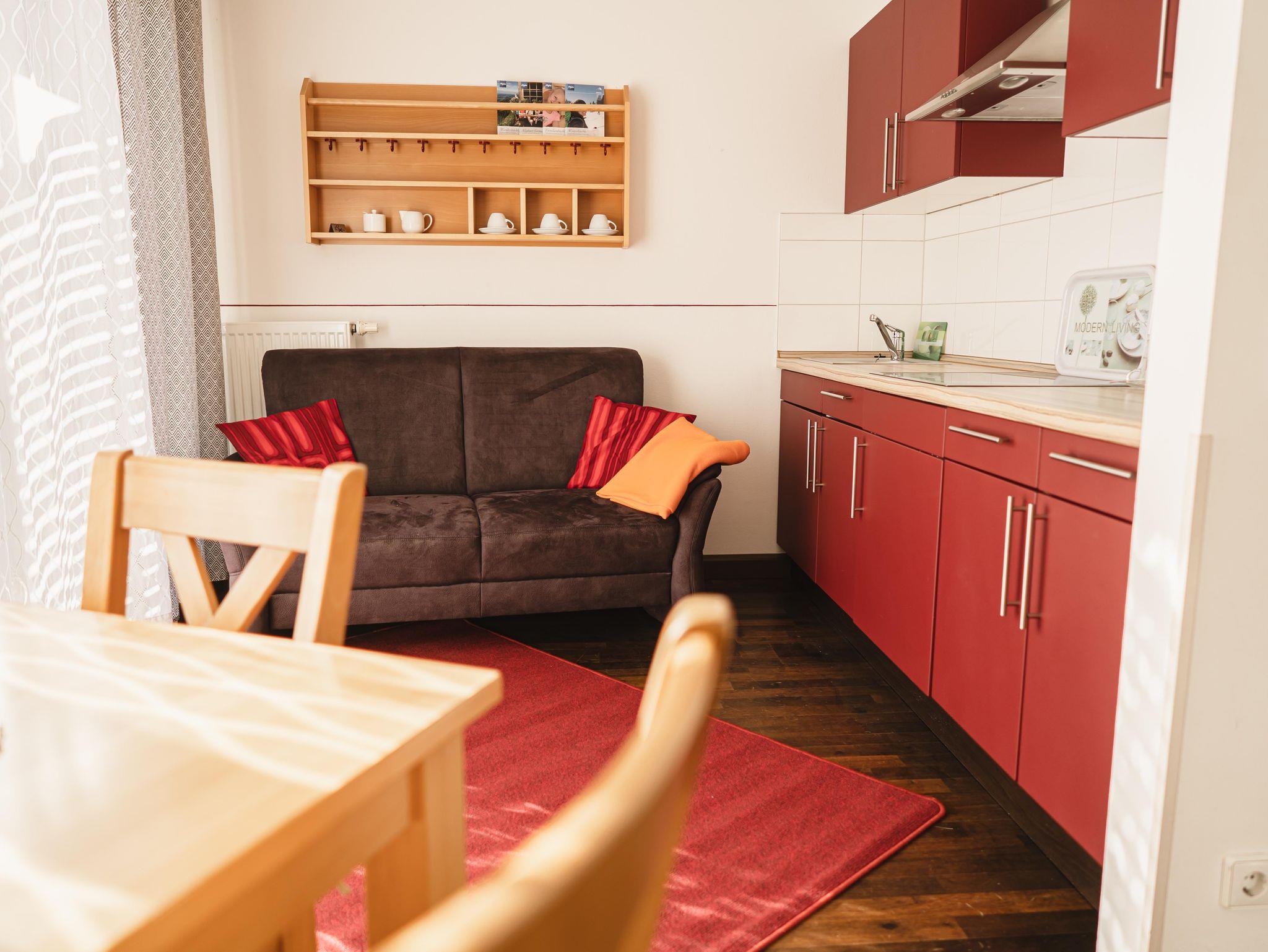 Die Belegung ist mit 2 Personen optimal, Kinderbett auf Anfrage möglich.