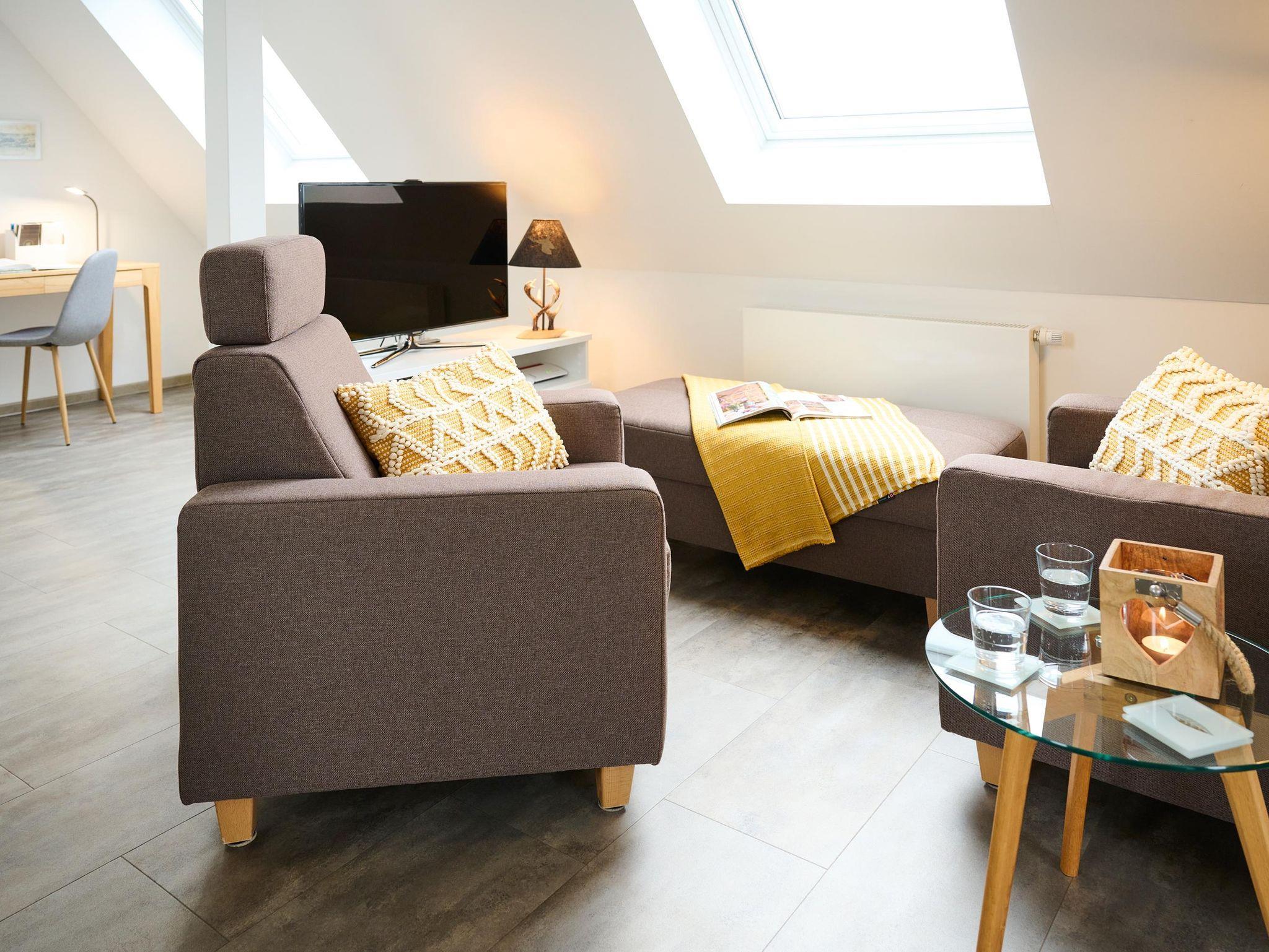 Die 60 qm große geräumige lichtdurchflutete, moderne Dachgeschosswohnung mit schönem Interieur bietet Platz für 1-2 Erwachsene (Nichtraucher).