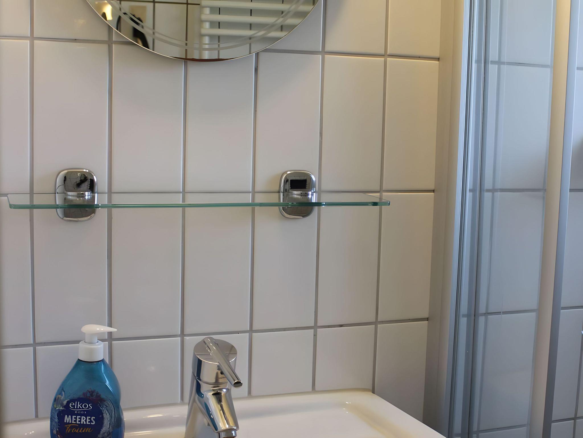 Im Badezimmer erwartet Sie eine Dusche, ein WC, ein Waschbecken und ein Föhn.