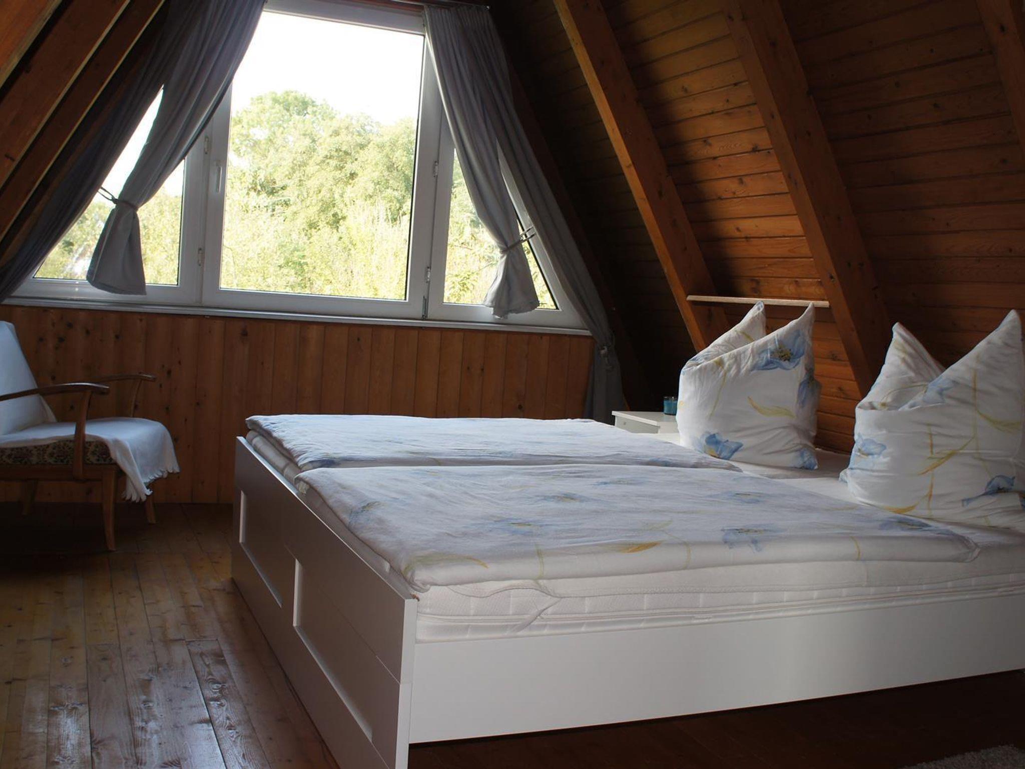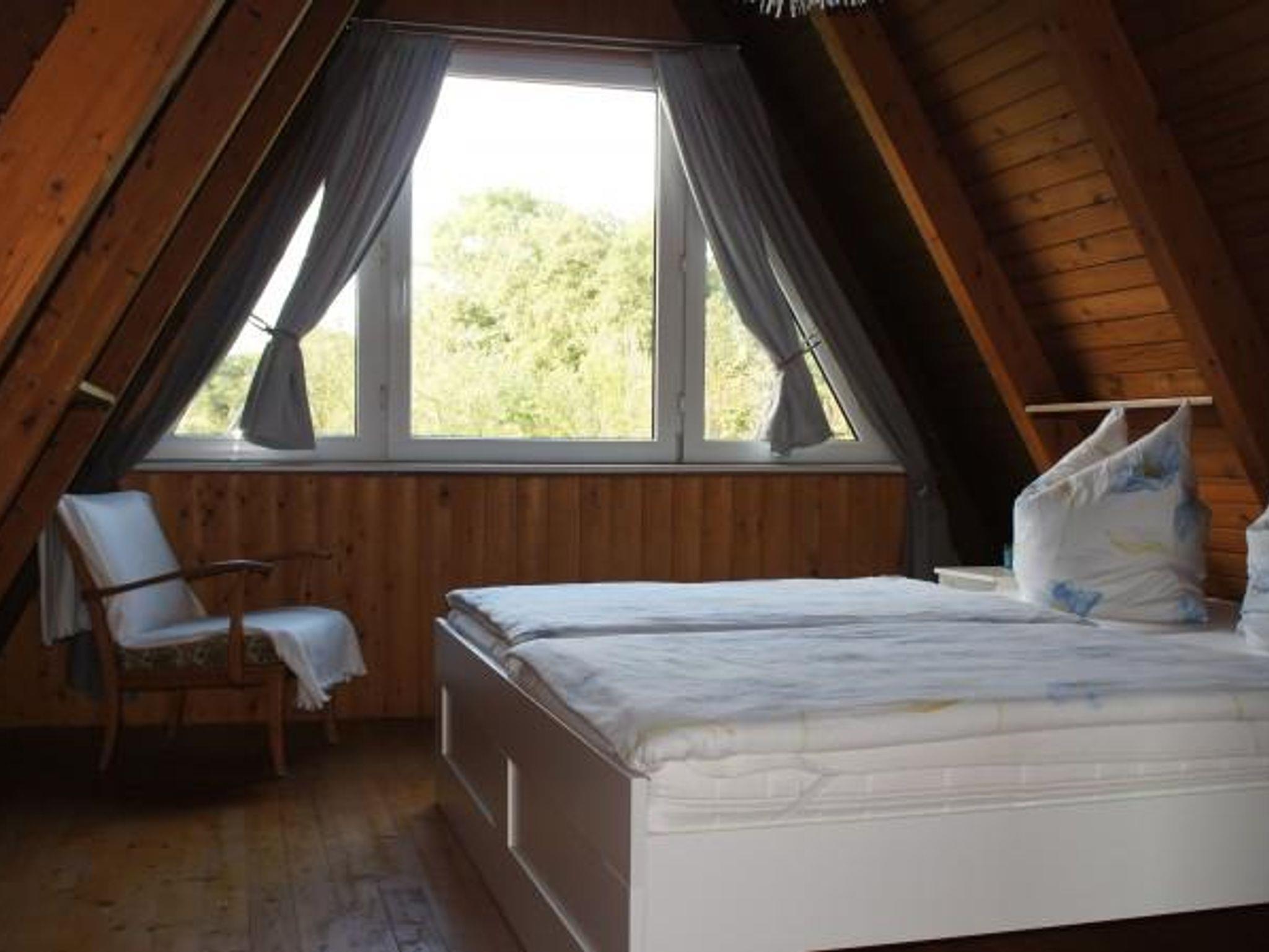 Das Ferienhaus hat einen großen Garten mit Terrasse auf einem ruhig gelegenen Eckgrundstück. Zum Ferienhaus gehört eine vollausgestattete Küche mit Essecke und eine Wohnecke mit TV und Kamin. Die drei Schlafzimmer sind im Haus verteilt, 1 Schlafzimmer mit Doppelbett und ein Schlafzimmer mit 2 Einzelbetten im Obergeschoß und ein Schlafzimmer mit Schlafsofa im Erdgeschoss. Auch ein neu saniertes Bad mit Dusche und WC befindet sich im Erdgeschoss. Die Terrasse mit einer angrenzenden Liegewiese, Gartengrill und gemütlichen Sitzmöbeln laden zu sehr schönen Urlaubstagen ein. Ein PKW-Parkplatz befindet sich am Haus.