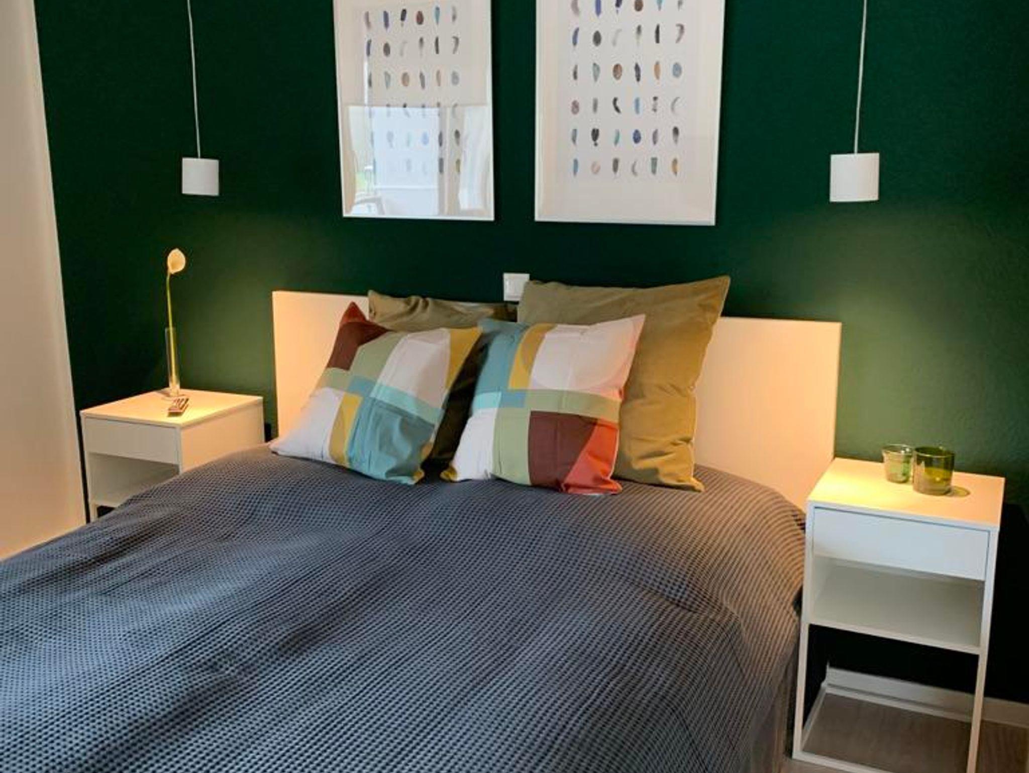 Interessant an dieser Wohnung ist die Aufteilung, die den Gästen die Möglichkeit des individuellen Rückzugs bietet. Konkret bedeutet das: Wir haben zwei voneinander trennbare Bereiche geschaffen. In jedem dieser beiden Bereiche gibt es neben dem Schlafbereich einen Essplatz für bis zu vier Personen, eine Couch, Fernseher sowie einen Arbeitsplatz. Man teilt sich die Küche, das Bad und das Gäste-WC.