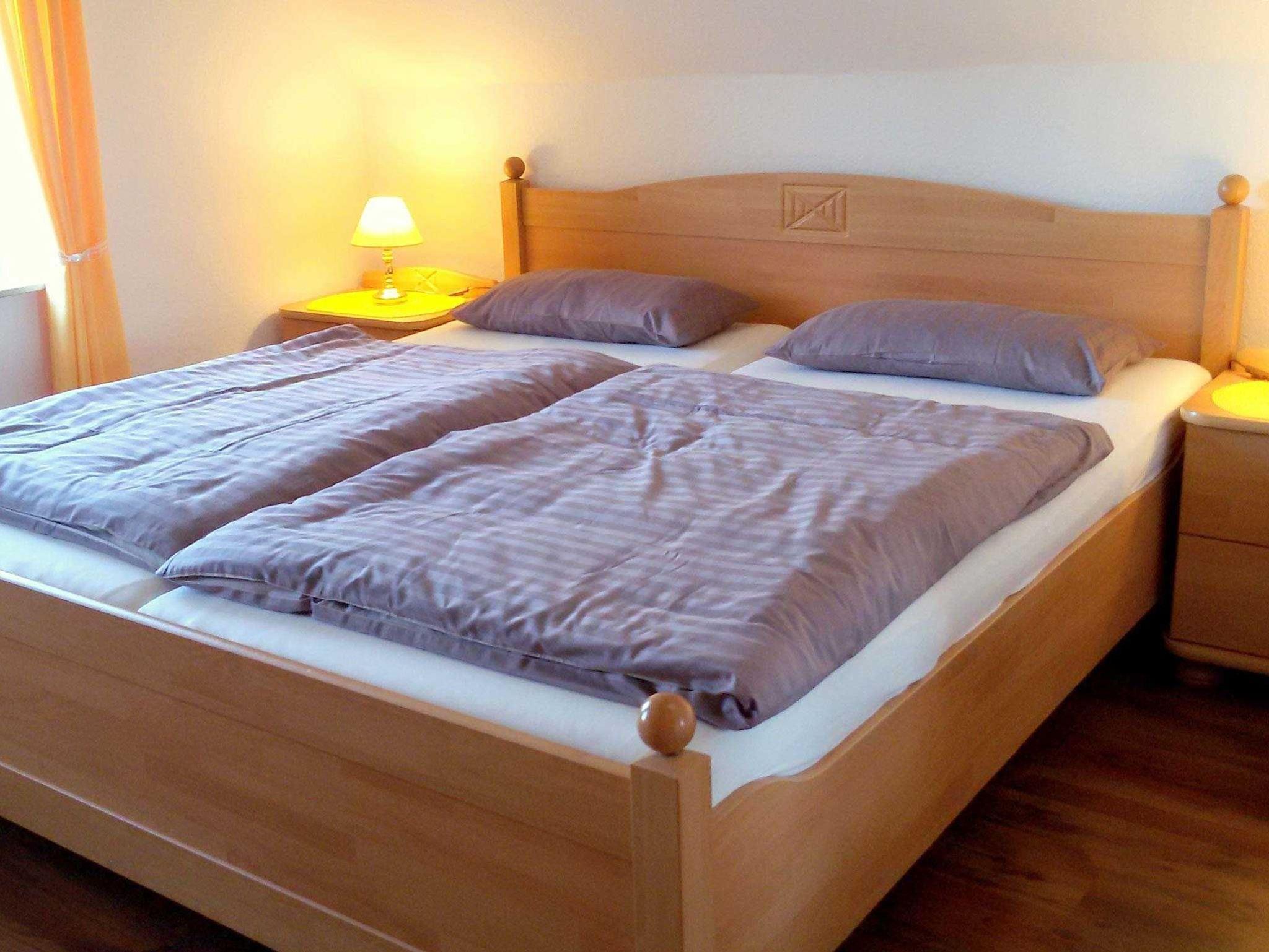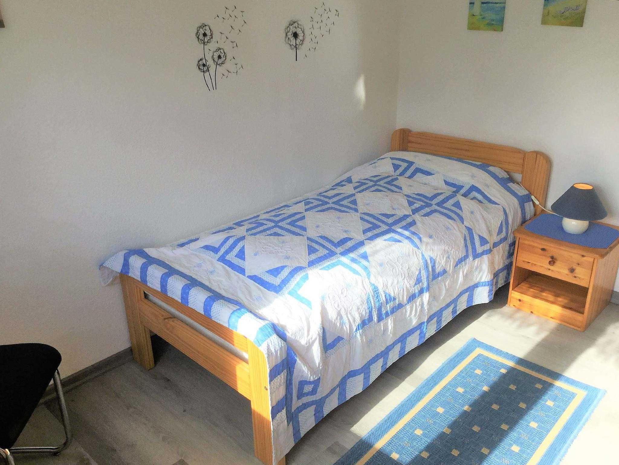 Gemütliche und komfortabel eingerichtete Oberwohnung (ca. 60 qm) mit Südbalkon. Für bis zu 3 Personen buchbar. Die Wohnung ist folgendermaßen ausgestattet: Wohnküche mit komplett eingerichteter Küchenzeile, Essecke, Polstergarnitur, Sat-HDTV, DVD, Internetradio, kostenloses WLAN. Schlafraum mit Doppelbett, zweites Schlafzimmer mit 1 Einzelbett, Bad mit Dusche und WC, Flur, Abstellraum. Carport. Fliegengitter vorhanden. Nichtraucherwohnung! Bettwäsche und Handtücher-Erstausstattung inklusive.