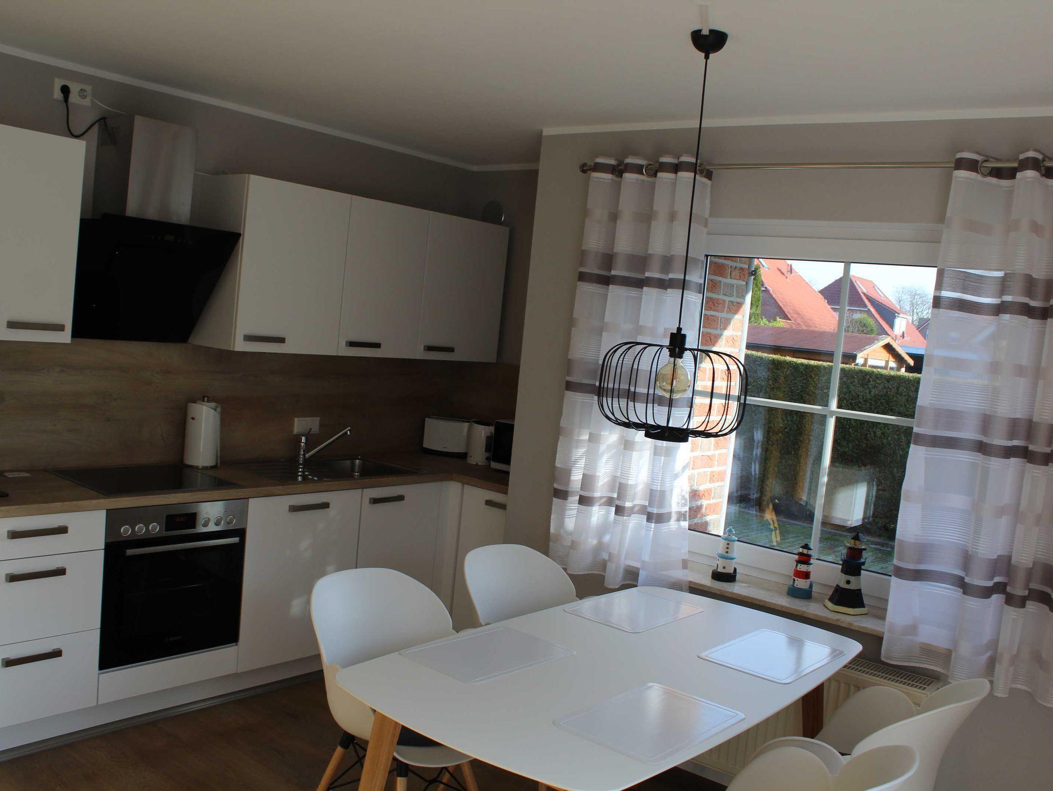 Diese moderne und im Jahr 2020 umfassend renovierte Erdgeschosswohnung verfügt auf ca. 56m² über einen Wohn- und Essbereich mit einer offenen Küche, über 2 separate Schlafzimmer (Doppelbett bzw. zwei Einzelbetten) sowie über ein Duschbad. Vom Wohnraum gelangen Sie auf die möblierte Terrasse mit Gartenteil. Alle Räume sind mit Fliesen bzw. Laminat, die Fenster mit Rollläden ausgestattet. Die geschmackvoll und hochwertig eingerichtete Wohnung bietet Ihnen alles, was Sie in ihrem Urlaub zur Erholung benötigen. WLAN steht Ihnen kostenlos zur Verfügung.