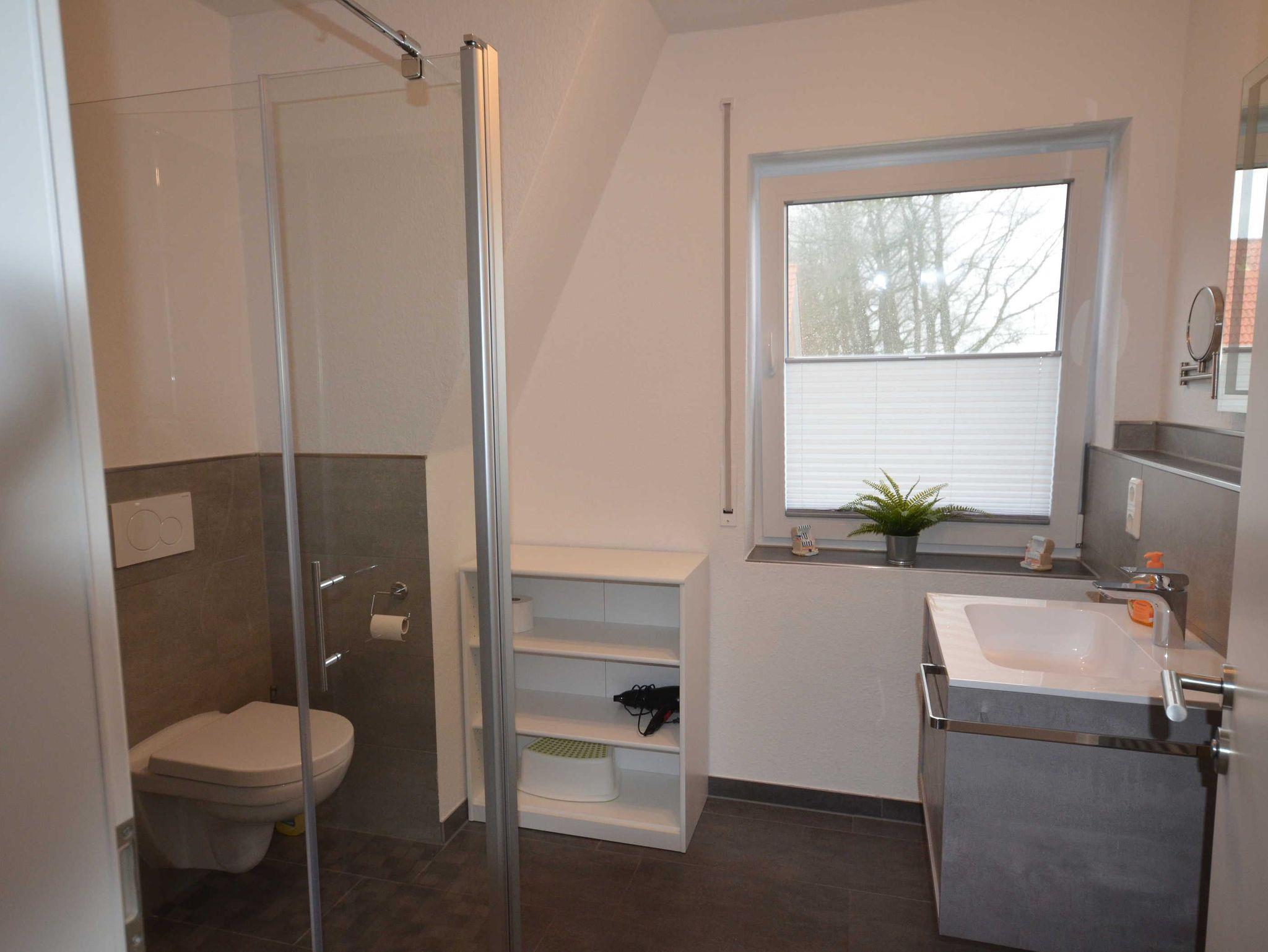 Das hell und komfortabel eingerichtete Haus verfügt über 2 Etagen mit 80 qm Wohnfläche. In jeder Etage befindet sich ein Badezimmer mit WC und geräumiger Dusche.