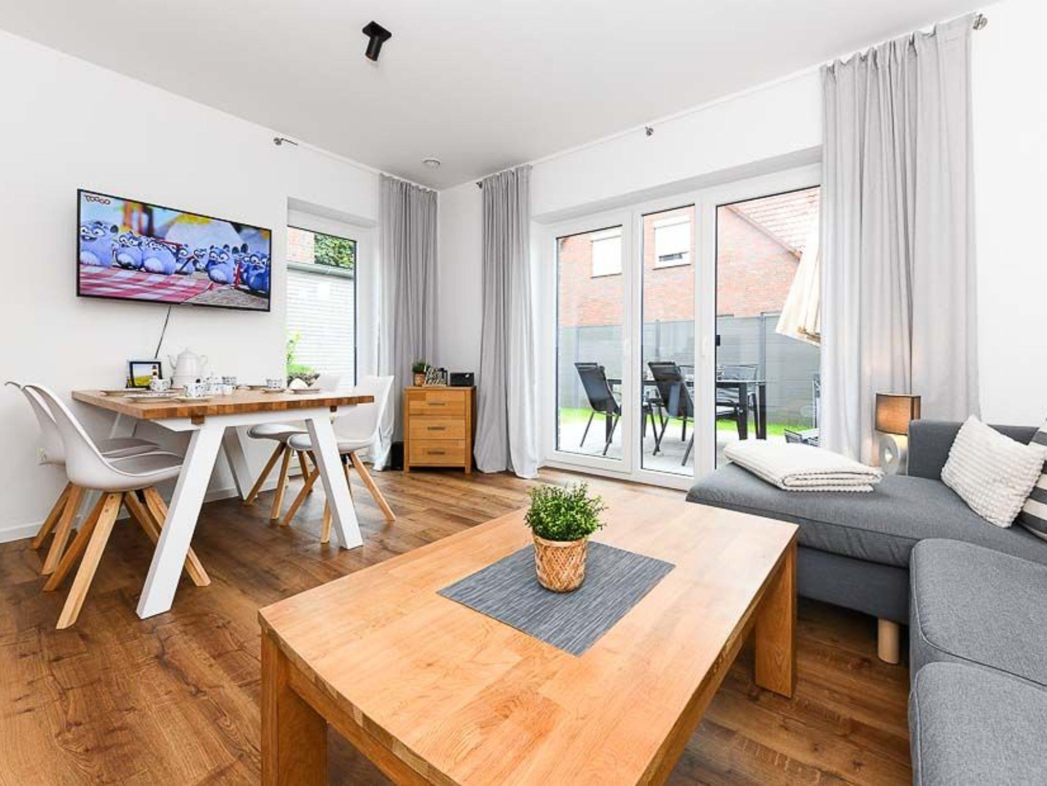 Modernes, gemütliches Ferienhaus Fischerstuuv in Carolinensiel-Harlesiel mit Terrasse und hochwertiger Ausstattung für einen entspannten Nordseeurlaub.