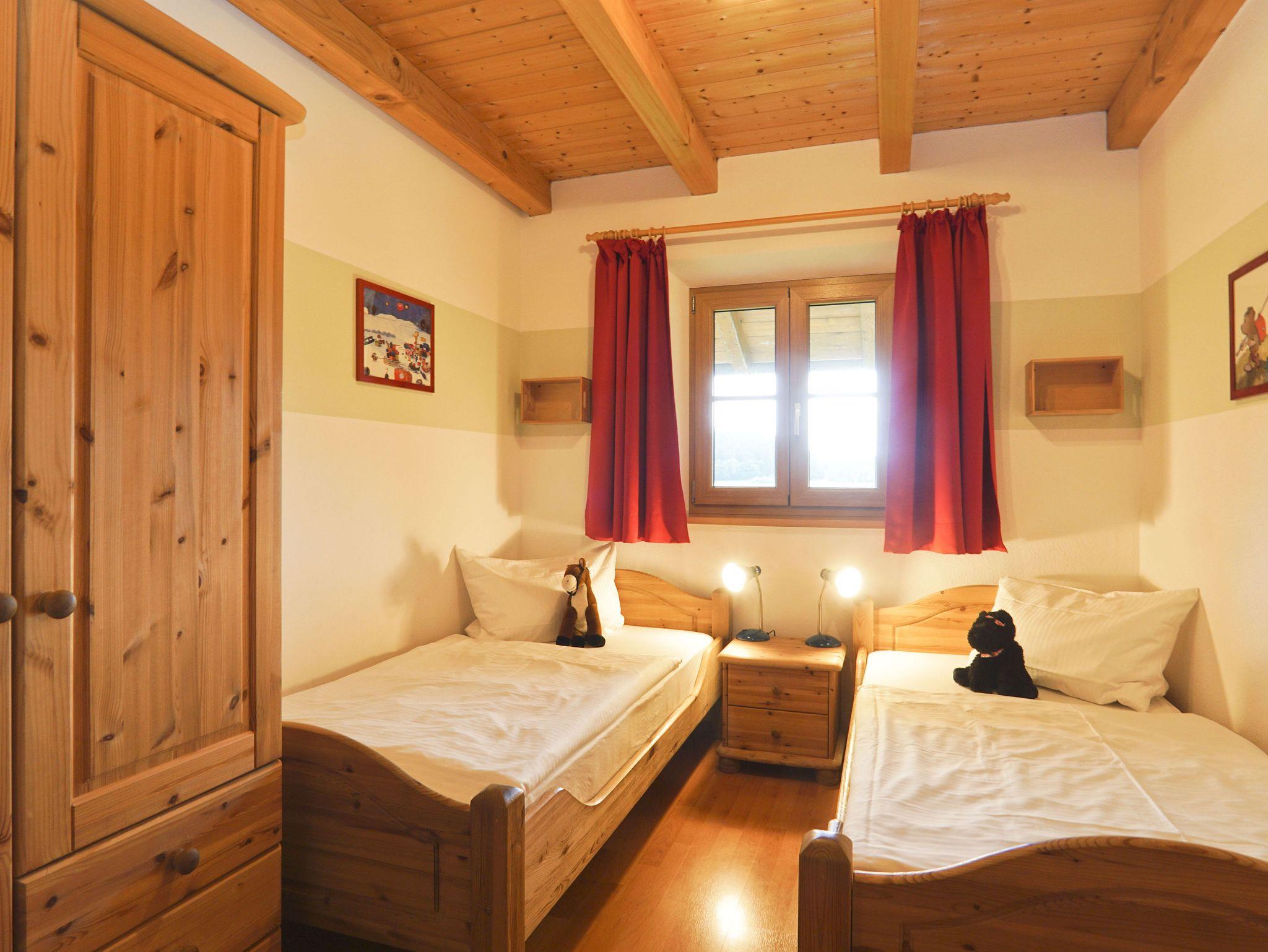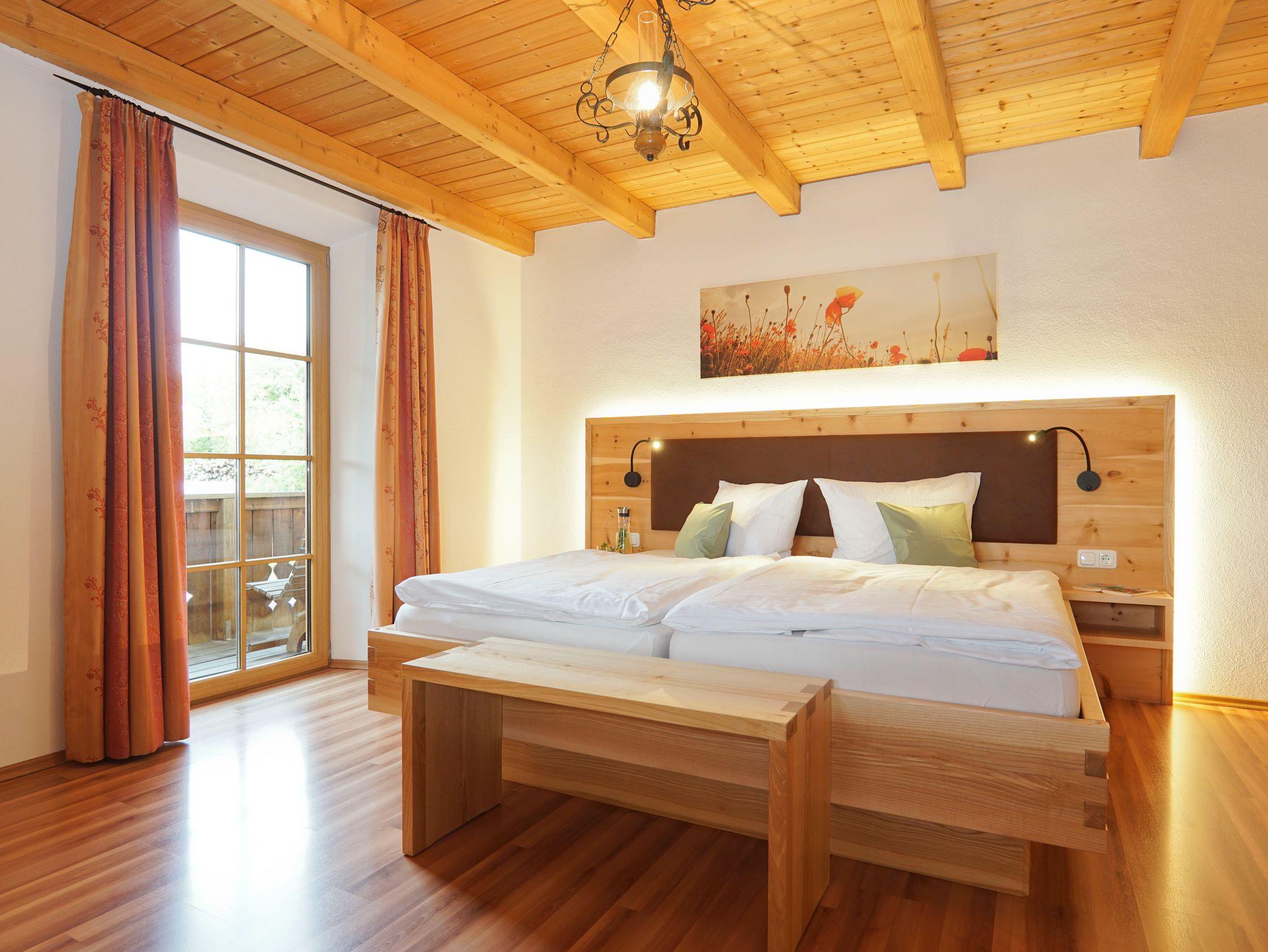 Kinderzimmer und Schlafzimmer sind mit exklusiven Massivholzmöbeln eingerichtet. Die Ländliche Wohnküche öffnet sich zum Südbalkon.