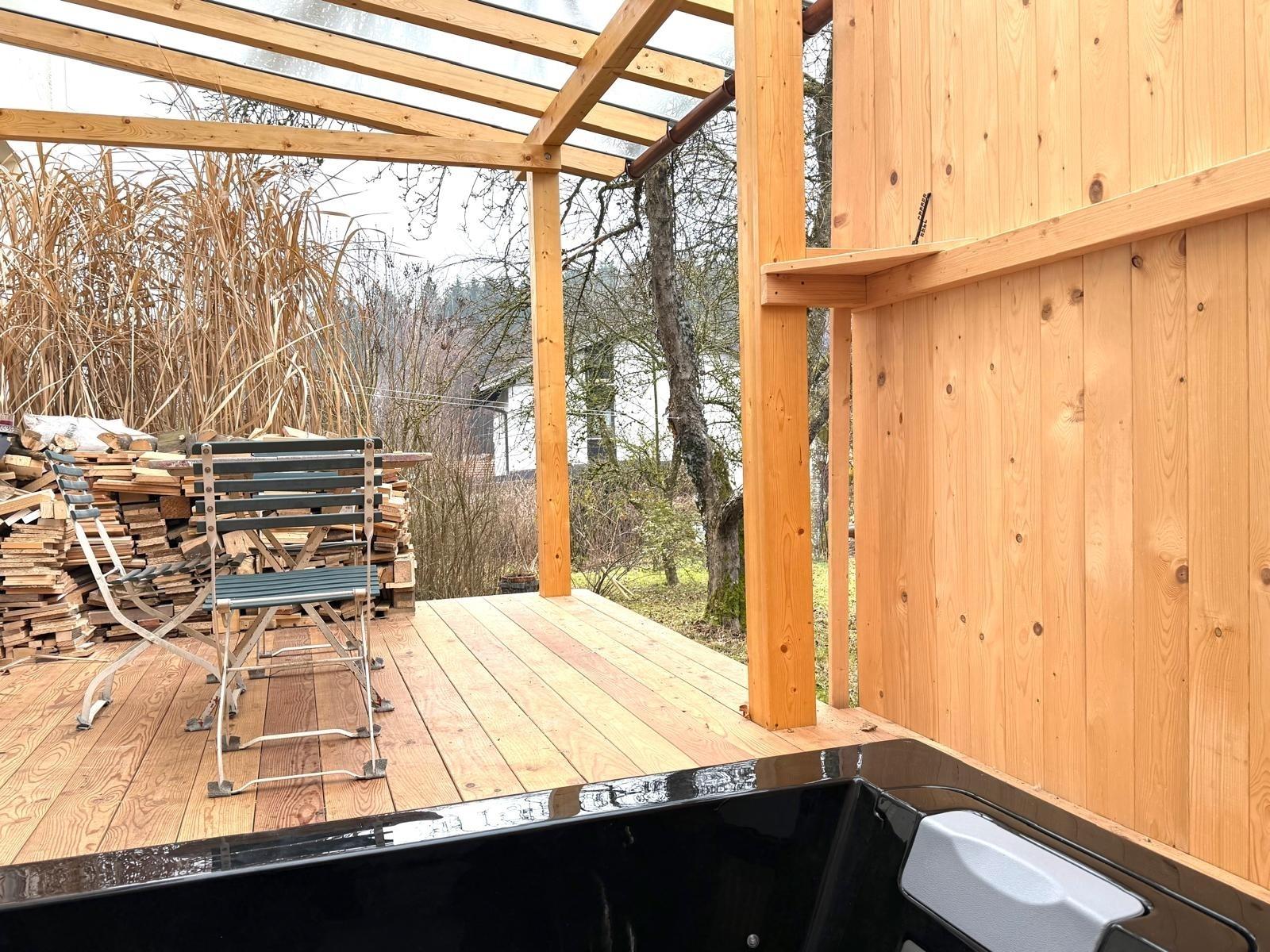 Ein kleines Bad mit Dusche und ein Whirlpool auf der Terrasse (Südseite) runden das Angebot ab.