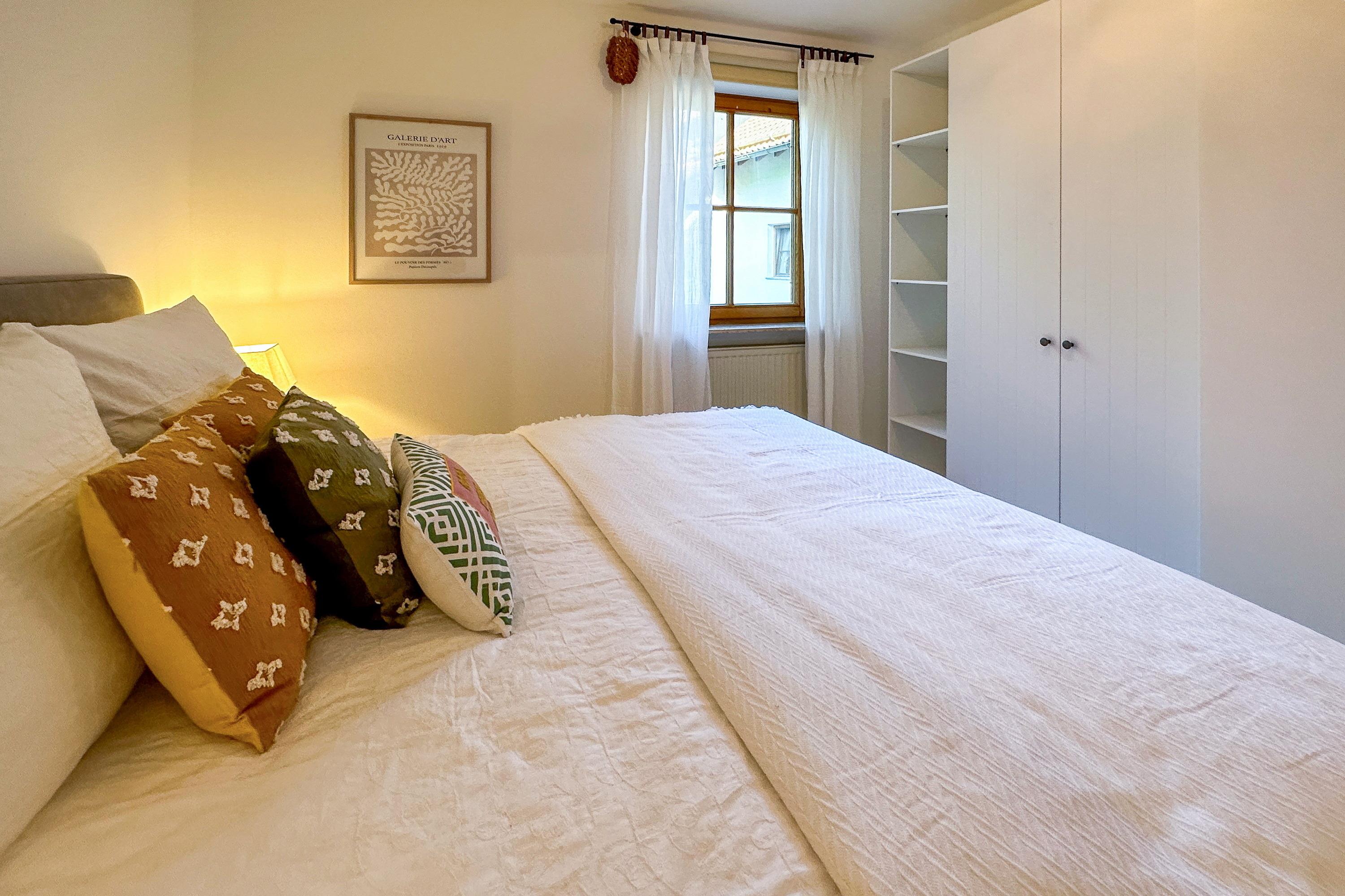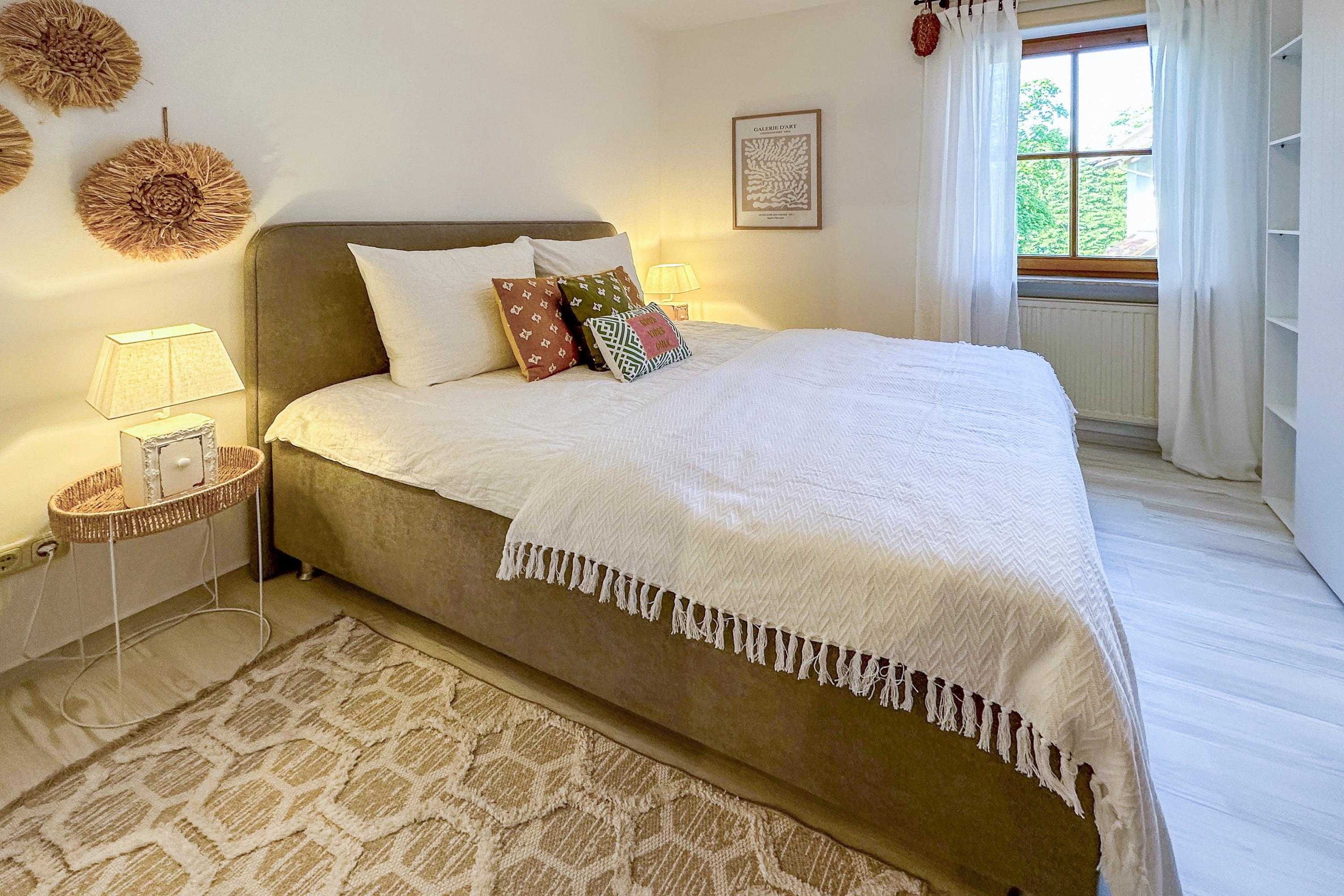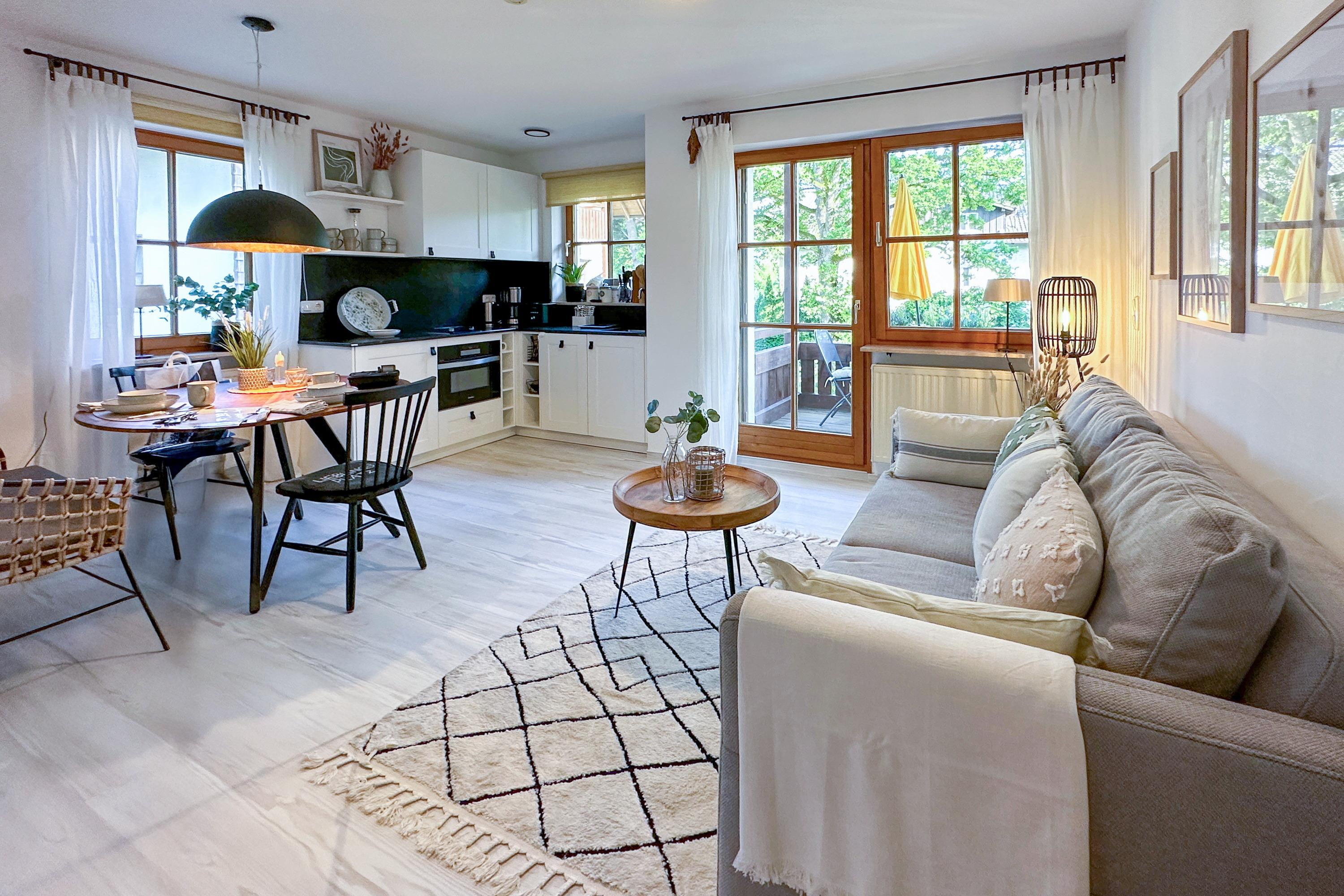 Die Ferienwohnung „Chiemsee Flair“ befindet sich im 1. Obergeschoss der Ferienresidenz Chiemseestrand in Chieming und ist die ideale Wahl für eine ruhige Auszeit am See. Die geschmackvoll eingerichtete, 36 m² große Wohnung bietet komfortabel Platz für bis zu 4 Gäste und verfügt über ein separates Schlafzimmer, einen hellen Wohn- und Essbereich mit offener Küche sowie ein Schlafsofa.