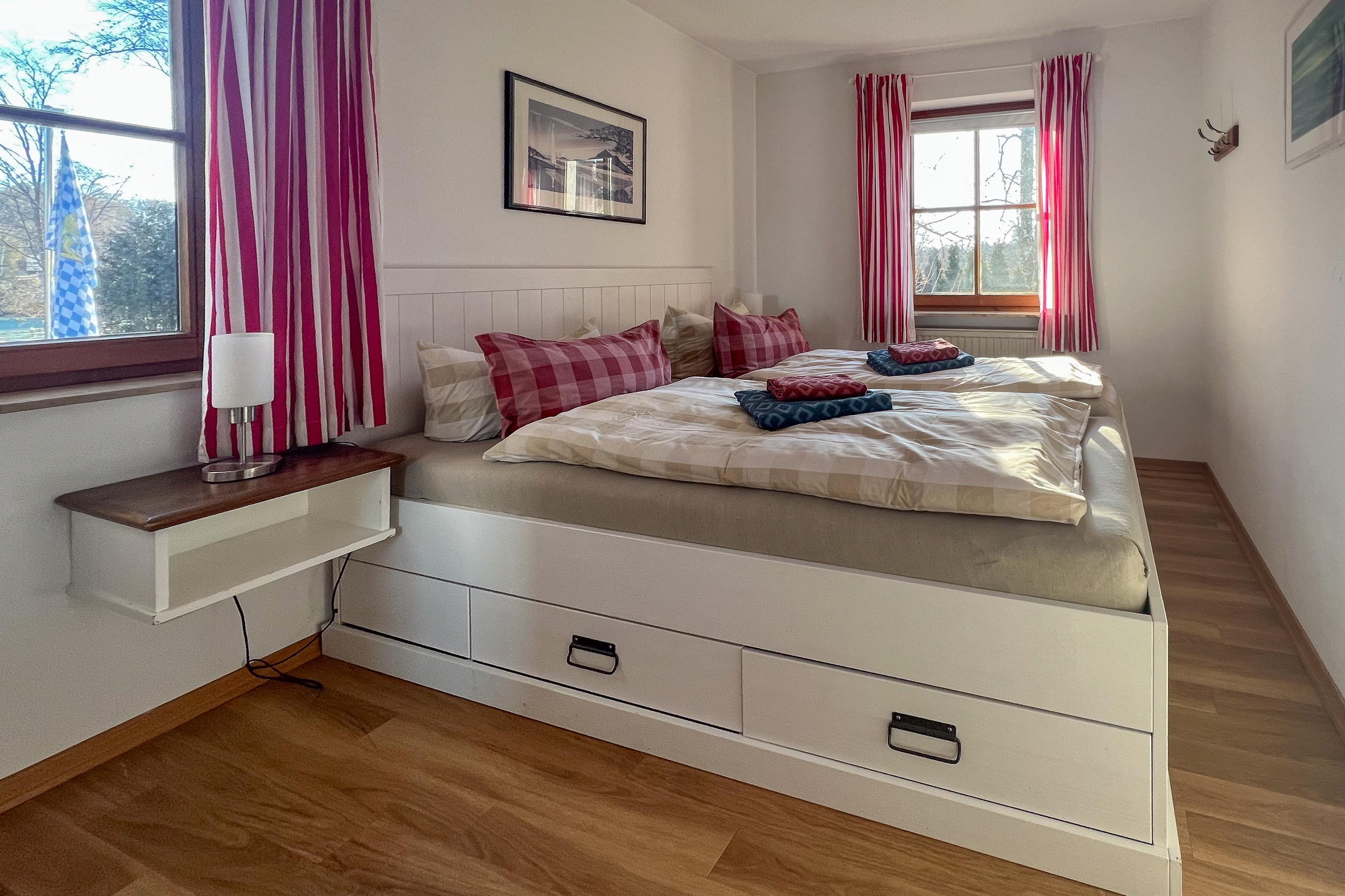 Die Ferienwohnung „Chiemseefreude“ ist die ideale Wahl für Familien, die ihren Urlaub in einer ruhigen und komfortablen Umgebung nahe dem Chiemsee verbringen möchten. Die großzügige Wohnung verfügt über zwei separate Schlafzimmer, einen hellen Wohn- und Essbereich mit offener Küche sowie ein zusätzliches Schlafsofa und bietet damit bequem Platz für bis zu 4 Personen.