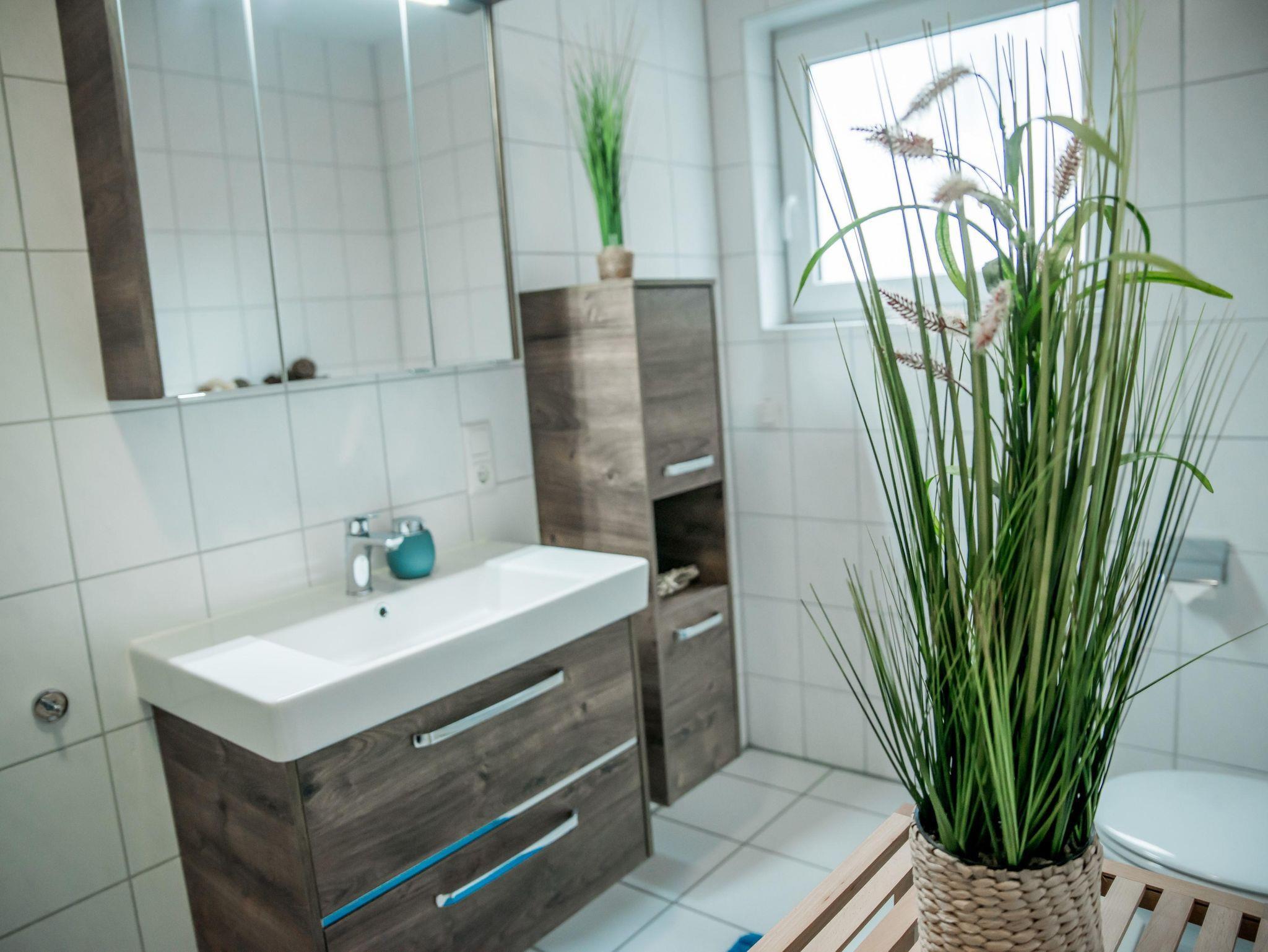 Unsere 64qm Ferienwohnung Finn für 2-3 Personen befindet sich im Untergeschoss, hinterm Haus, mit separaten Eingang.