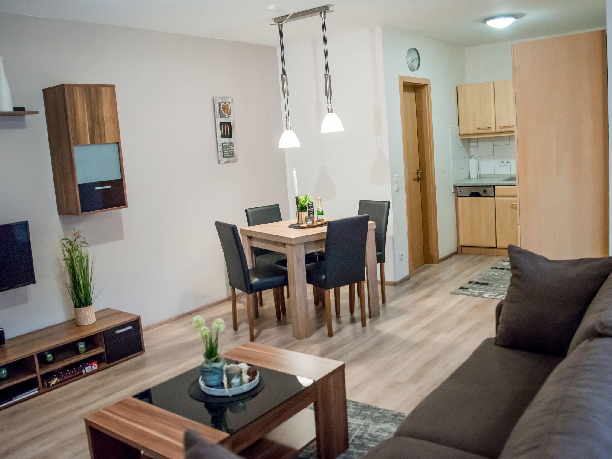 Sie besteht aus einem gemütlichen kombinierten Wohn-Küchenbereich mit Schlafcouch ( für eine weitere Person oder zwei Kinder gegen Aufpreis nutzbar), 1 Schlafzimmer, Bad mit Dusche/ WC. Küche ist komplett ausgestattet mit Spülmaschine, Backofen, Kaffeemaschine, Senseo, Wasserkocher, Toaster, Mikrowelle u.s.w., SAT-TV
