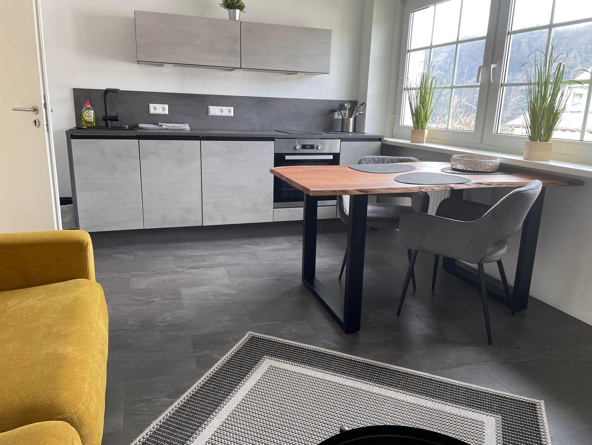 Unsere Ferienwohnung (ca.30 qm) ist ideal geeignet für einen gemütlichen Aufenthalt zu zweit. Unter anderem finden Sie hier einen Wohn-Essbereich, ein separates Schlafzimmer und eine Küche mit Kühlschrank und Gefrierfach, Kaffeemaschine, Wasserkocher, Toaster, Spülmaschine, Backofen mit Zwei-Platten-Herd und vieles mehr.