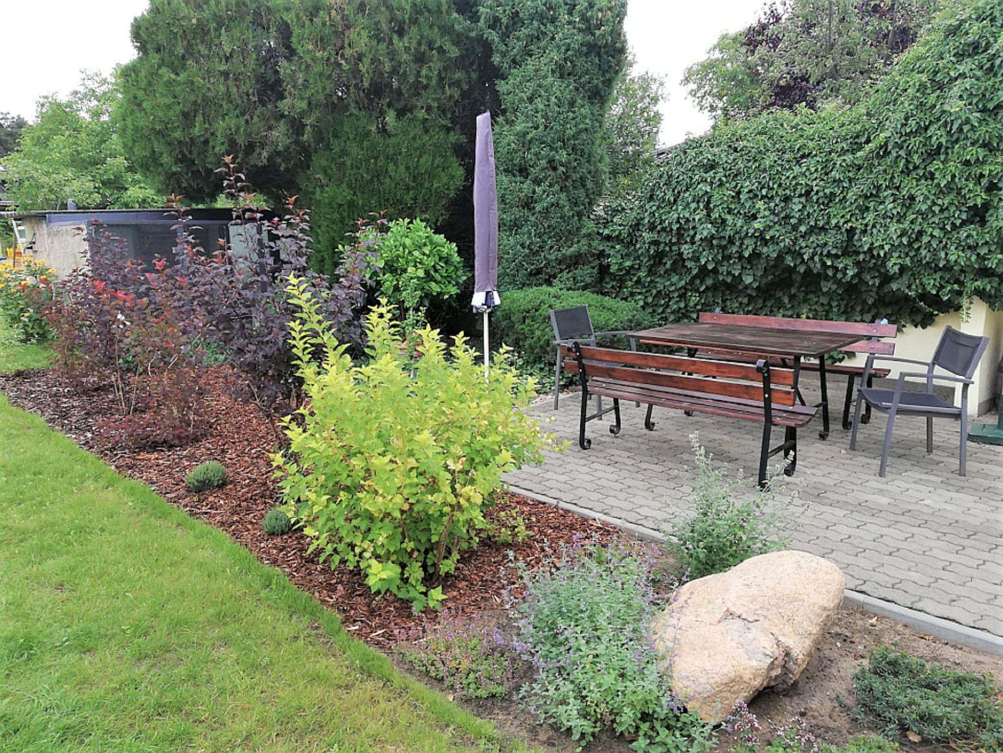 Das Ferienhaus befindet sich auf einem 2300 qm großem Grundstück. Der große Garten bietet viel Platz für eine ausreichende Betätigung bei Groß und Klein. Das Gelände ist kinderfreundlich und mit einem schönen Strauch- und Baumbestand gestaltet. Die kleinen Gäste können Sandkasten, Schaukel und Rasenflächen in Beschlag nehmen. Diverses Spielzeug und ein Bollerwagen stehen ebenfalls zur Verfügung. Ausreichende Sitzgelegenheiten, Sonnenliegen und ein Grill sorgen für entspannte Zeiten. Es gibt viele Möglichkeiten sich hier ein paar Tage zu erholen, sich mit Freunden und Bekannten zu treffen oder aktiv die nähere und weitere Umgebung zu erkunden. PKW sowie Fahrräder können auf dem Grundstück abgestellt bzw. untergestellt werden. Eine Ladestation für E-Autos (11kw) ist für die Gäste nutzbar.