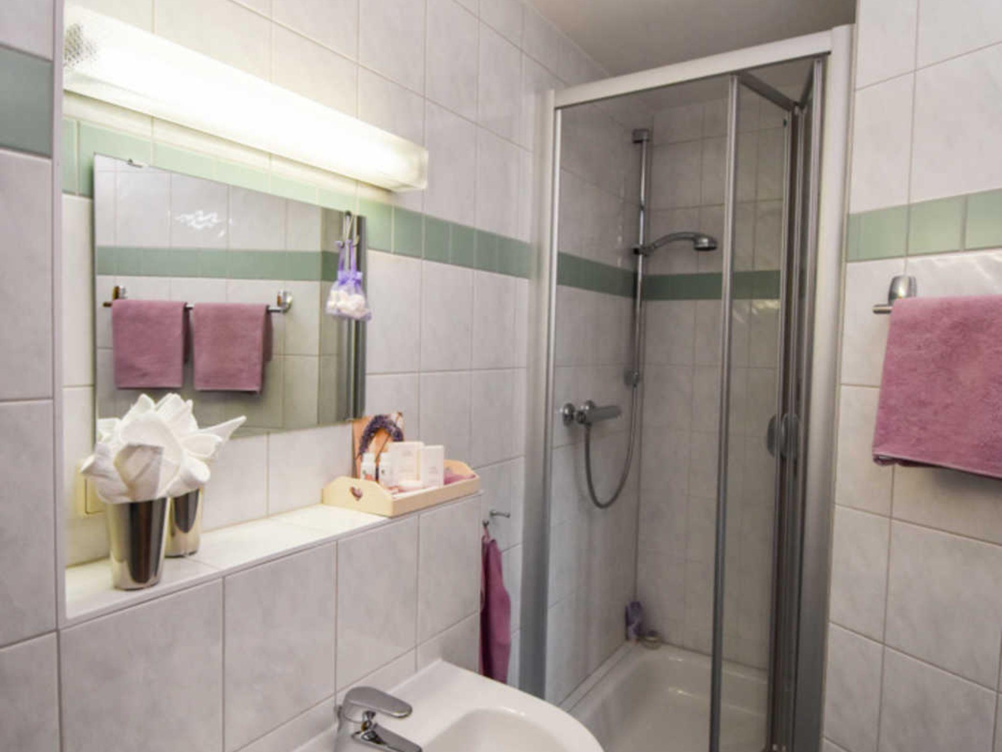 Alle Zimmer verfügen über ein Bad mit Dusche und WC.