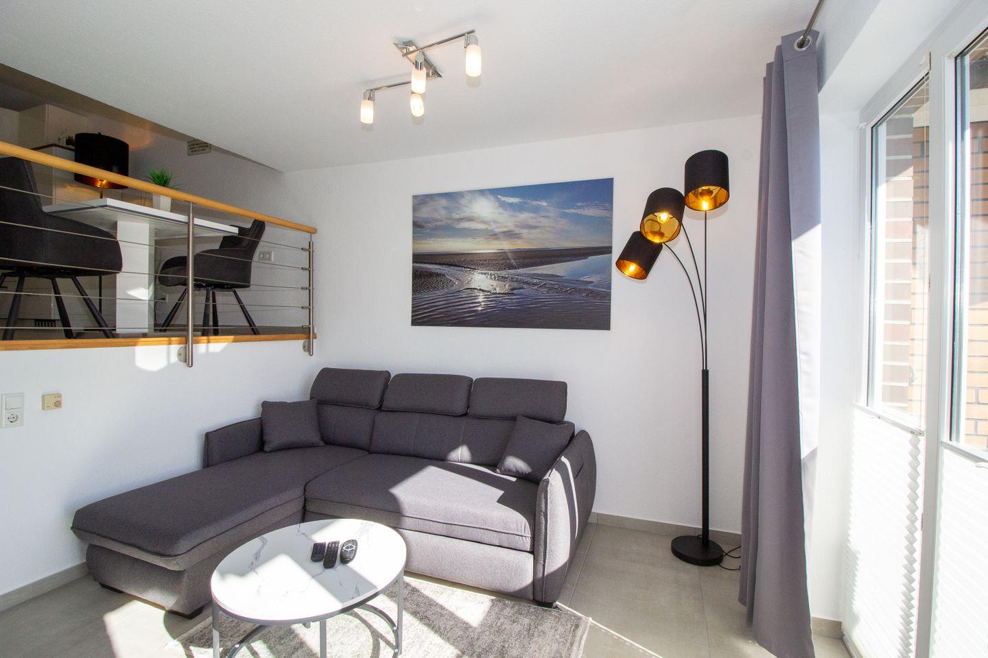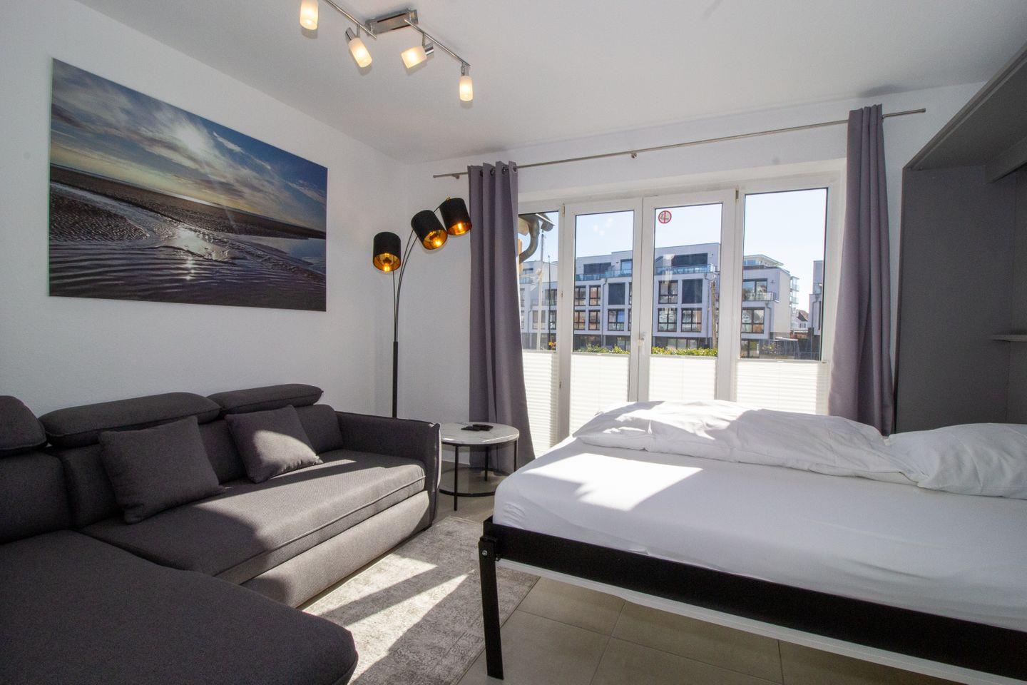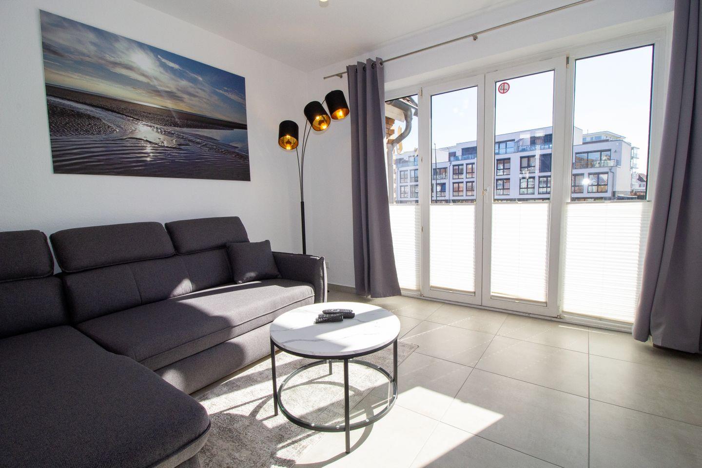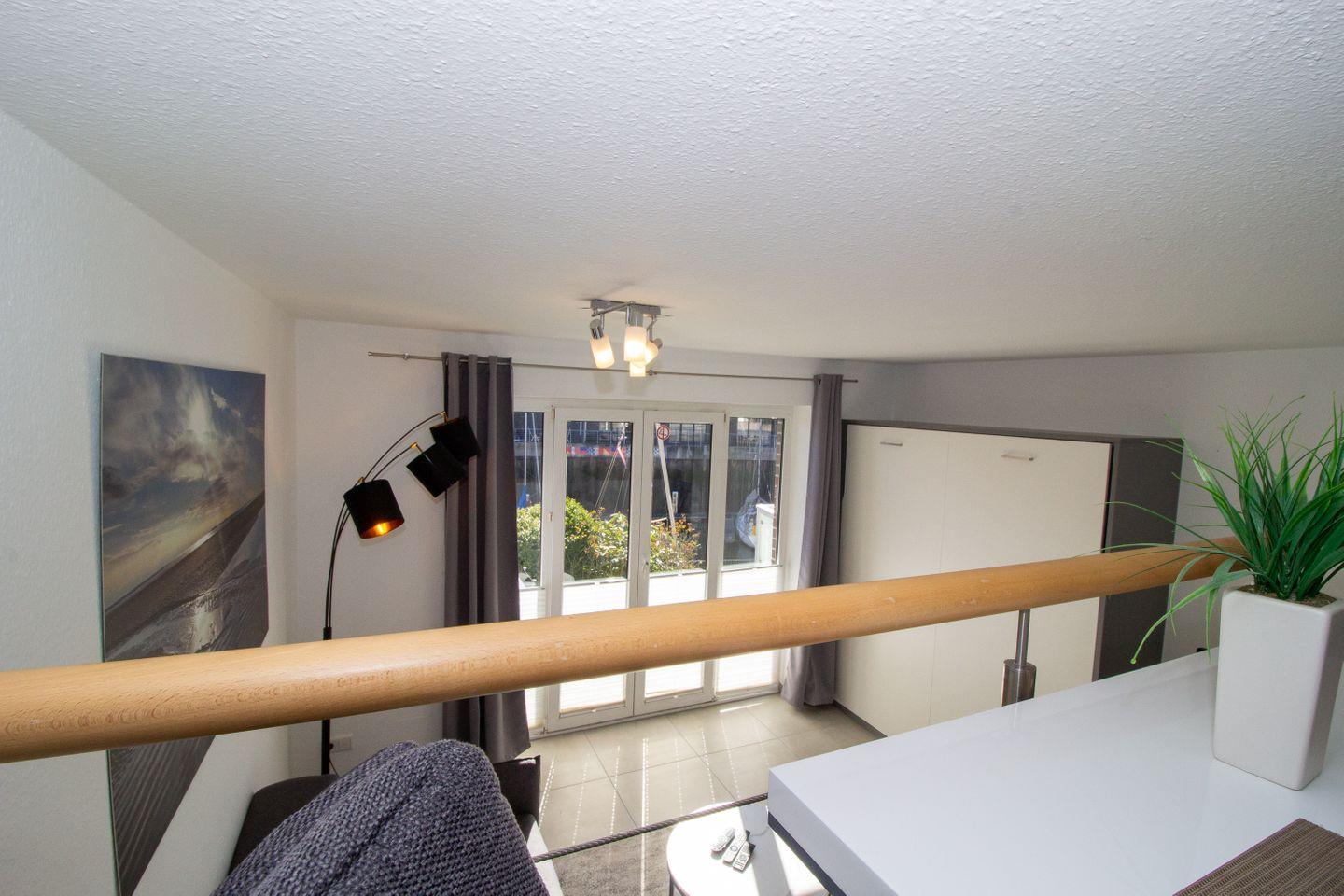 Moderne Ferienwohnung am Yachthafen in Cuxhaven mit Terrasse, Balkon und eigenem Parkplatz.